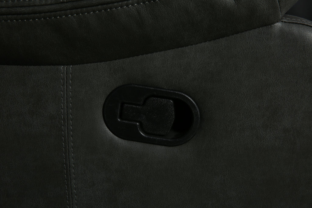 Having its seat and arms upholstered in soft leather, this chair provides comfort from every angle. The reclining mechanism allows you to sit back and be as comfortable as you wish while you watch your favorite TV programs. A beautiful gray finish makes it even more alluring. Add it to your living space for an elegant lift. Dimensions: 42" X 36" X 40".