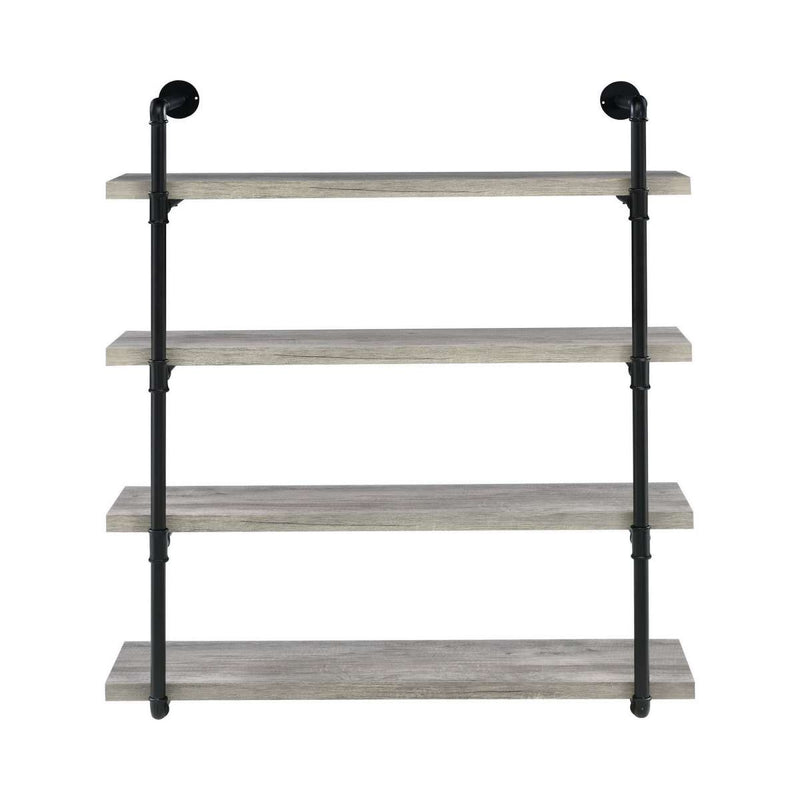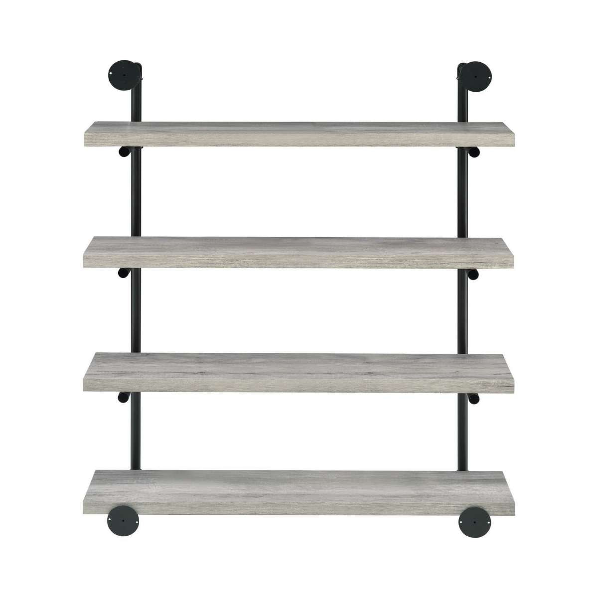 Amplify the storage space of your home or living area by bringing in this sophisticated wall shelf. Featuring a tubular pipe design metal frame in a black finish, it incorporates a 4 wooden shelves in a gray finish, granting a dual tone look. Provided with mounting hardware, it can be mounted on any wall easily.