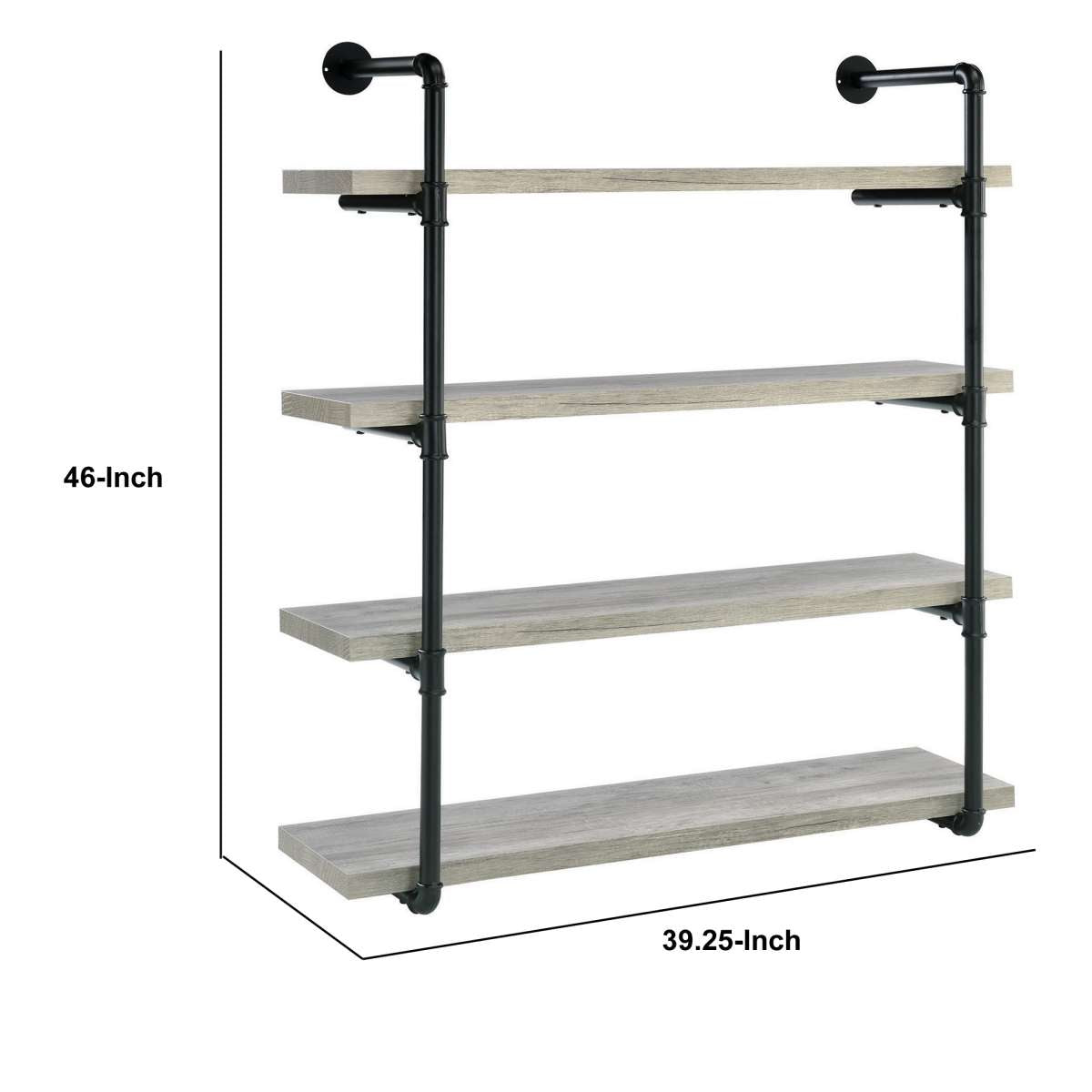 46 Inch 4 Tier Metal And Wooden Wall Shelf, Black And Gray By Benzara
