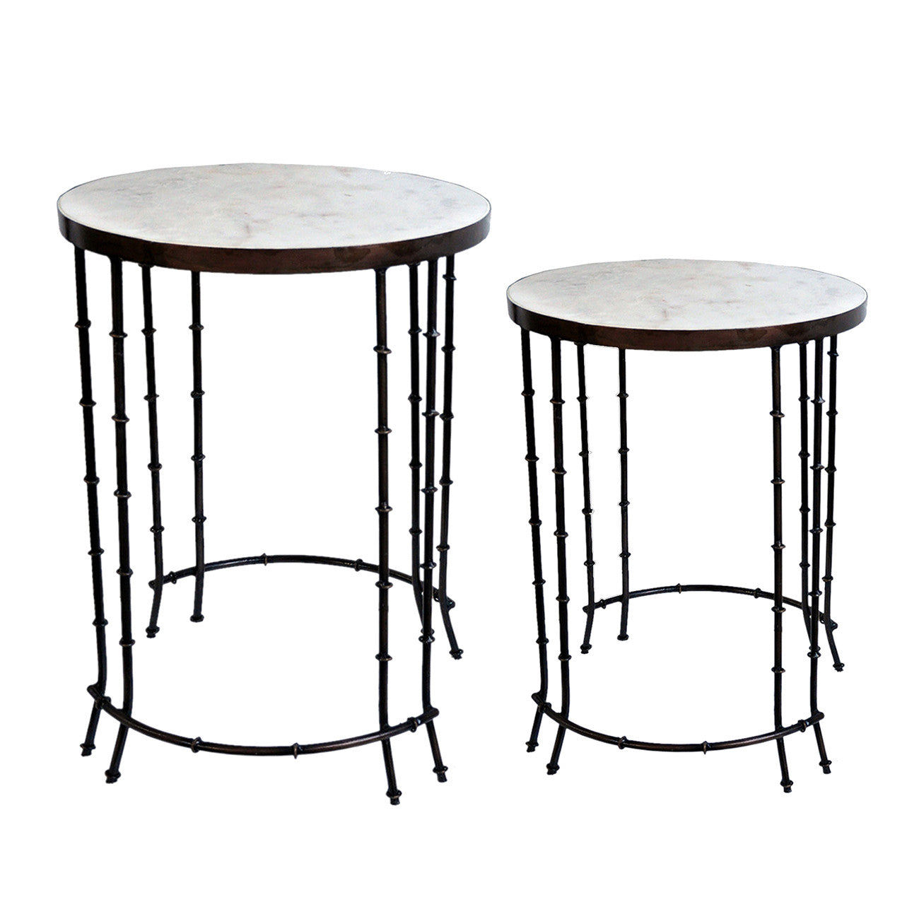 Built with a metal frame with black-finish and the marble table-top, this set of two charming Fenna Side Table offers a modern design to freshen up your space. It will add class and style to your living room, family room, hallway, or any room into which you would like to display lamps, collectibles, plants, your prized items and more. Made of metal & marble.