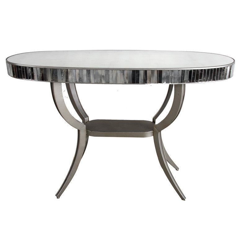 This metal glass console table is perfect for any industrial styled room. Its silver finish compliments any modern furnishings.