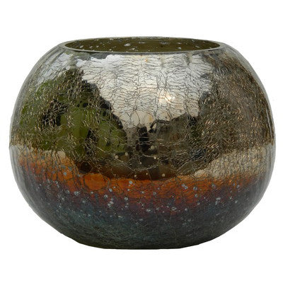Make your home or event radiate vintage charm with our collection of Mercury Glass vases and candle holders. This Tricolor Mercury Glass T-Light Candle Holder features expertly crafted glass and brings a mystical glow to your surroundings. Speckled candlelight and tricolor hues will bring glitz and glamour to your seasonal decor, or embellish. Made of mercury glass.
