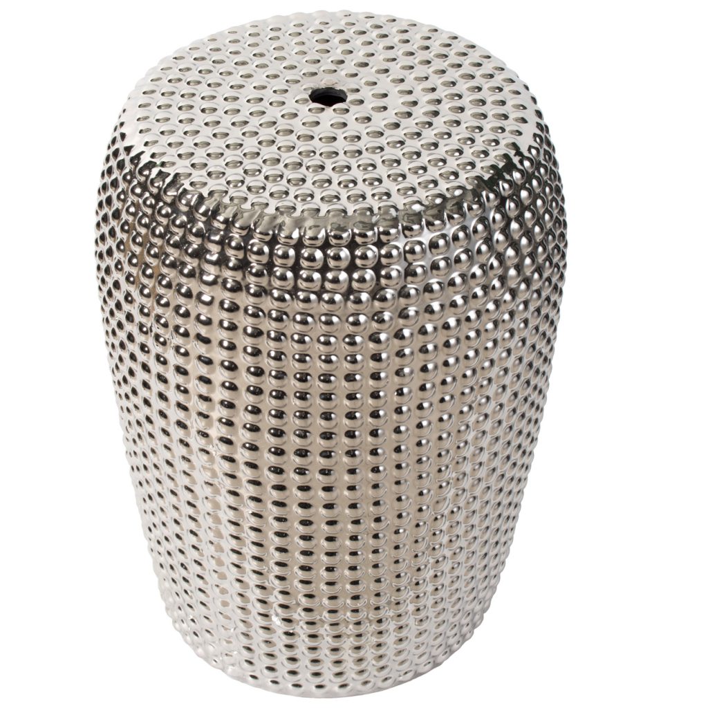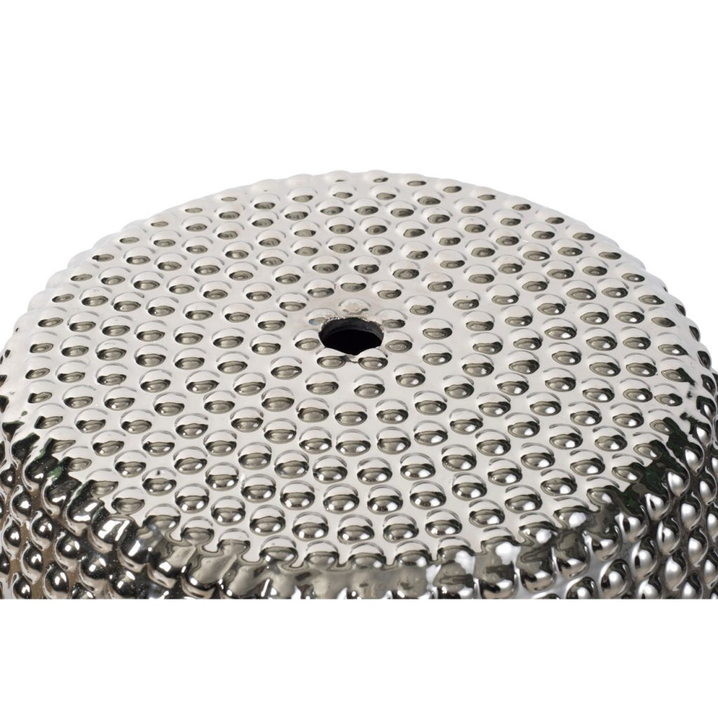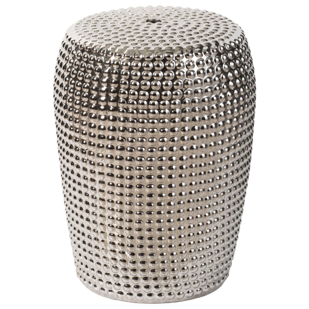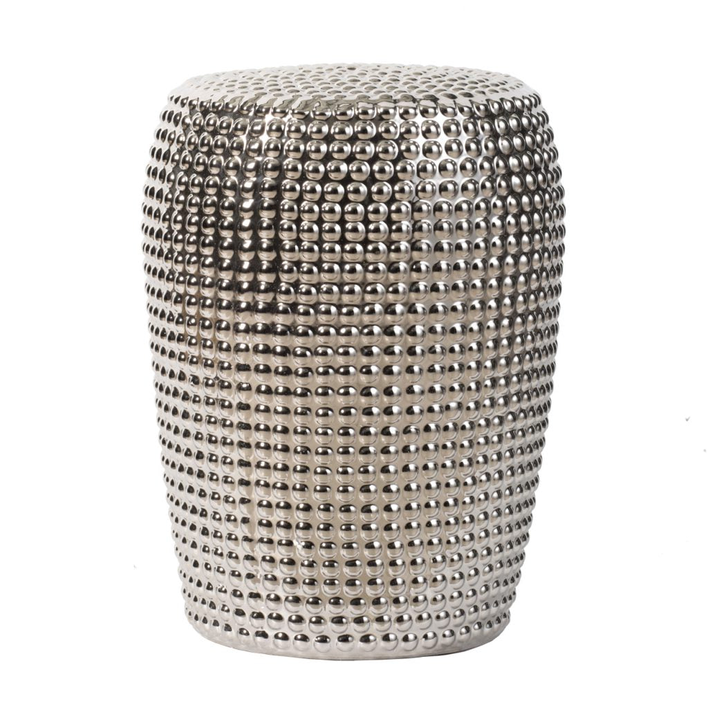 Add bold texture and a glittering shine to any indoor or outdoor space with this dynamic 18" Silver Ceramic Stool. With its versatile design, this piece transforms from convenient extra seating to a side table while adding an eye-catching sparkle to any room. Liven up a chic office, airy sunroom, or luxurious master bathroom with this dazzling, modern stool that complements any home or office.