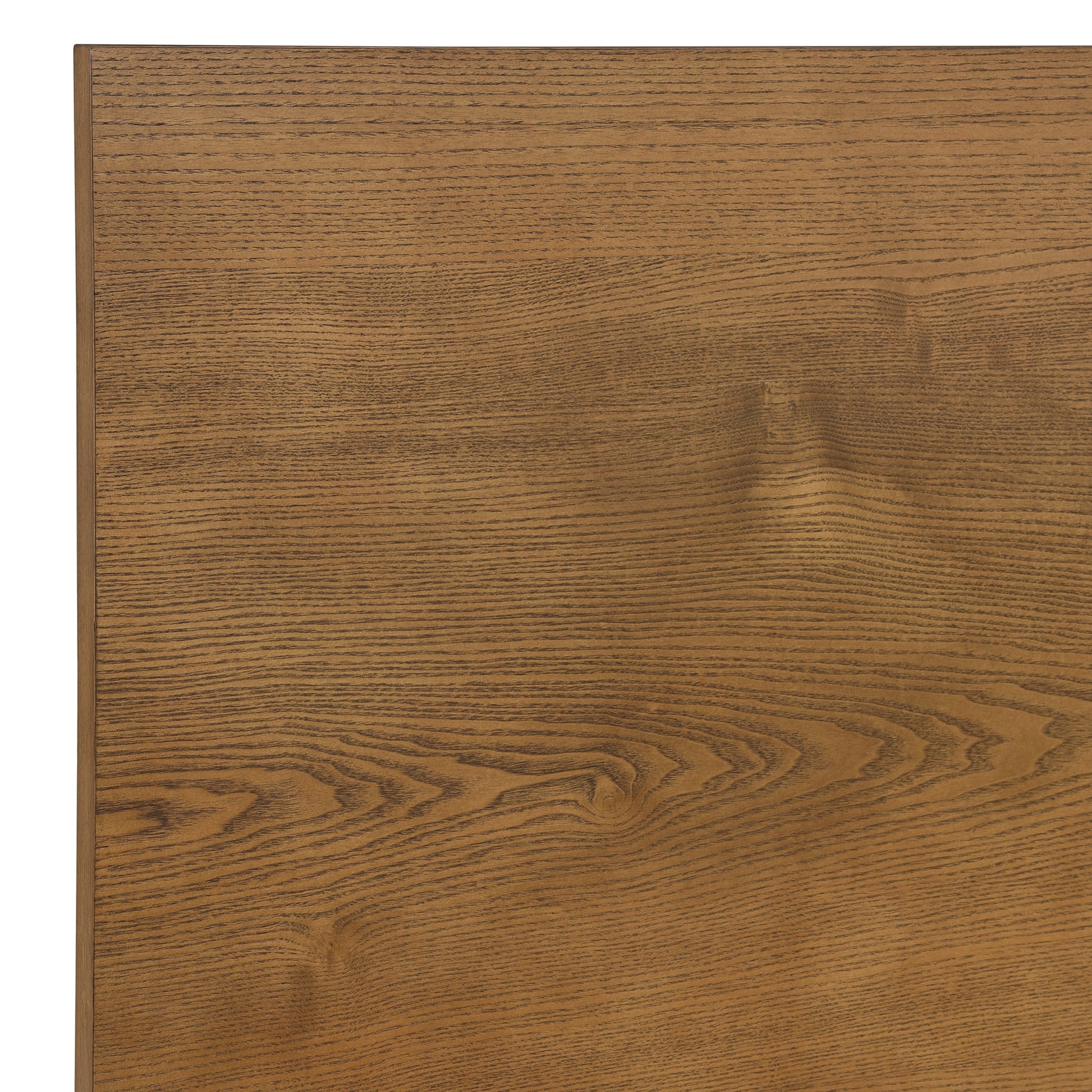 Enliven your bedroom with the modern charm of our Aldo Platform Bed Frame in brown oak with black metal legs. The modern and clean-lined profile of the bed allows the rich organic grain of oak wood to stand out. Unlike other hardwood materials, oak furniture requires minimal maintenance. Because it is a dense wood, it does not scratch or stain easily. Thus, you can keep it looking brand-new, like when you first purchased it. All you need to do is dust it and apply furniture wax at least every six to nine months. It invites natural warmth to create a cozy and inviting spot for relaxation. Platform beds can be used with most types of mattresses, including innerspring, memory foam, hybrid, and latex. Elevated upon a black metallic base, our sleek and versatile bed lends an open and airy feel to your bedroom. Under bed storage is available with the 8-inch leg height. This bed frame is available in both king and queen sizes to offer the perfect spot to read, lounge, and attain a comfy sleep at night. King bed frame dimensions 83" L x 79" W x 46" H, Queen bed frame dimensions 83" L x 63" W x 46" H.