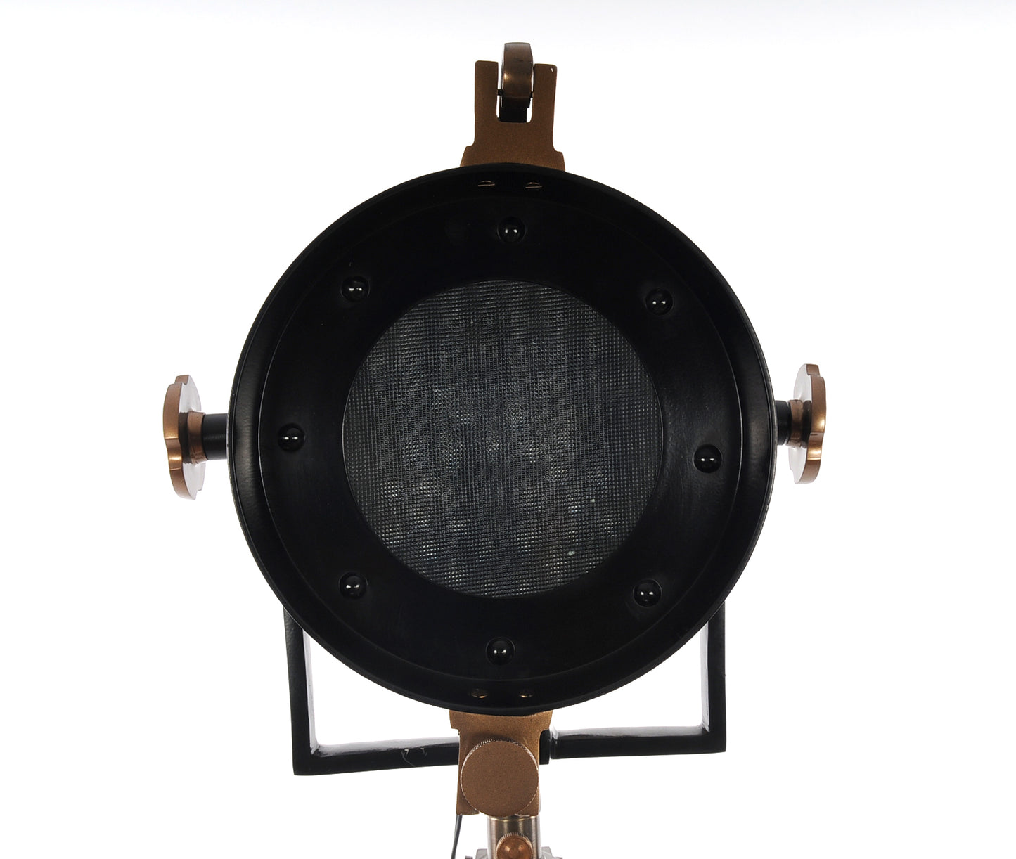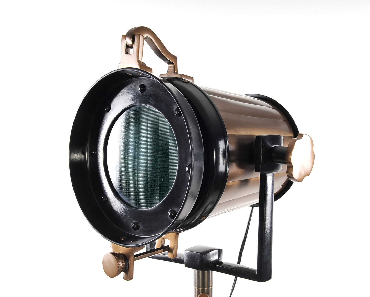 The spotlight serves several purposes, being not only attractive but also practical in adding low dimmed light. Are there particular accents that need some love? The spotlight will highlight any dark corner or item that isnt given justice by traditional lighting. ? Spotlight made out of aluminum steel with a bronze finish ? Coffee wooden stand with a bright annealed finish ? Textured glass on spotlight ? On/off switch on wire ? Takes 60 W bulb (bulb not included) ? Two-prong American plug ? Stand extends from 29-50 inches