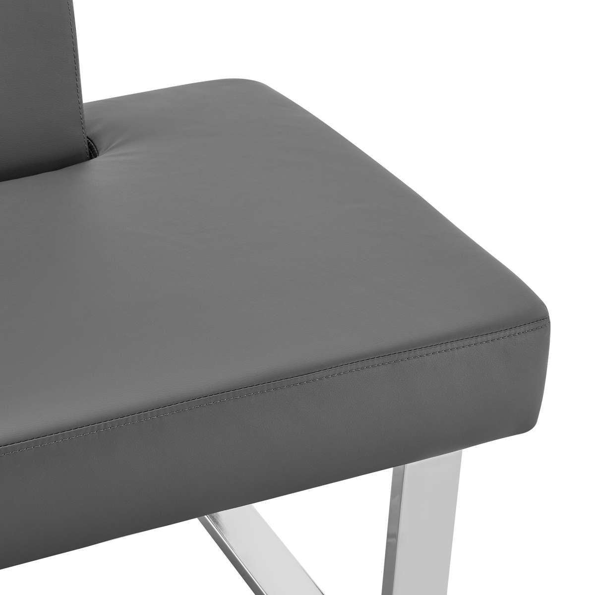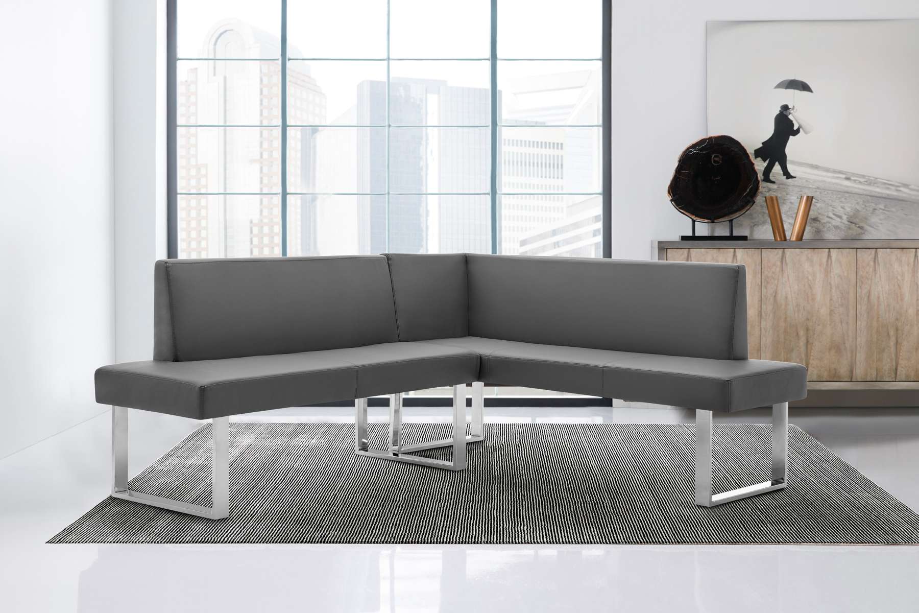 Amanda Contemporary Nook Corner Dining Bench in Gray Faux Leather and Chrome Finish By Armen Living