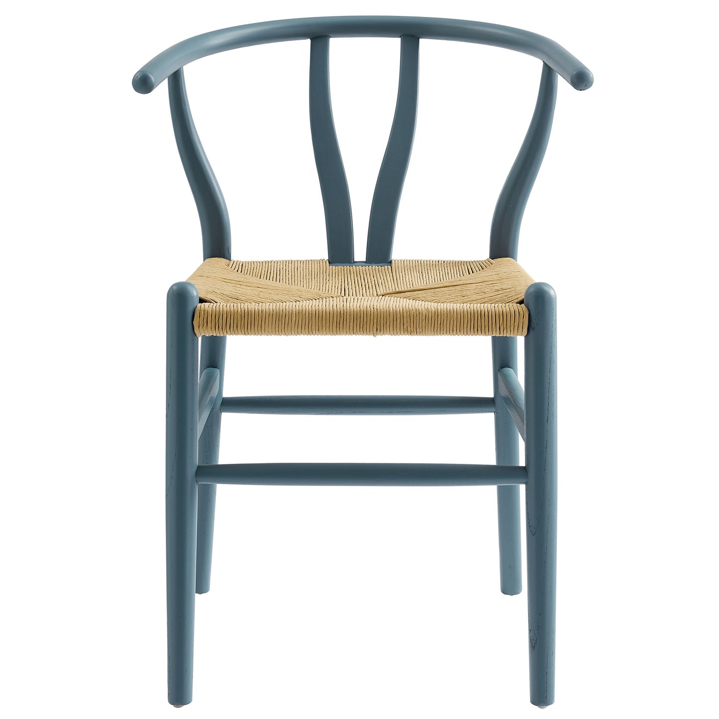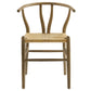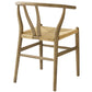 Rustic lines form the flowing frame of the Amish Wood Rope Dining Chair. Set with a mid-century style, this rope accent chair combines minimalist aesthetics with natural details, bringing beauty to your kitchen and dining areas. Featuring an elm wood frame with a curved half moon backrest that dips into a distinctive V-shaped cutaway, this dining chair follows a classic retro chair design. Its woven paper rope seat complements the solid wood construction, making this accent armhair perfect for your living room, lounge, bistro, cafŽ, or kitchen dŽcor. Arriving fully assembled, the 32-inch tall Amish Dining Chair features an ergonomic design with foot bar supports, offering both comfort and style for long-lasting enjoyment. Rope Chair Weight Capacity: 331 lbs.