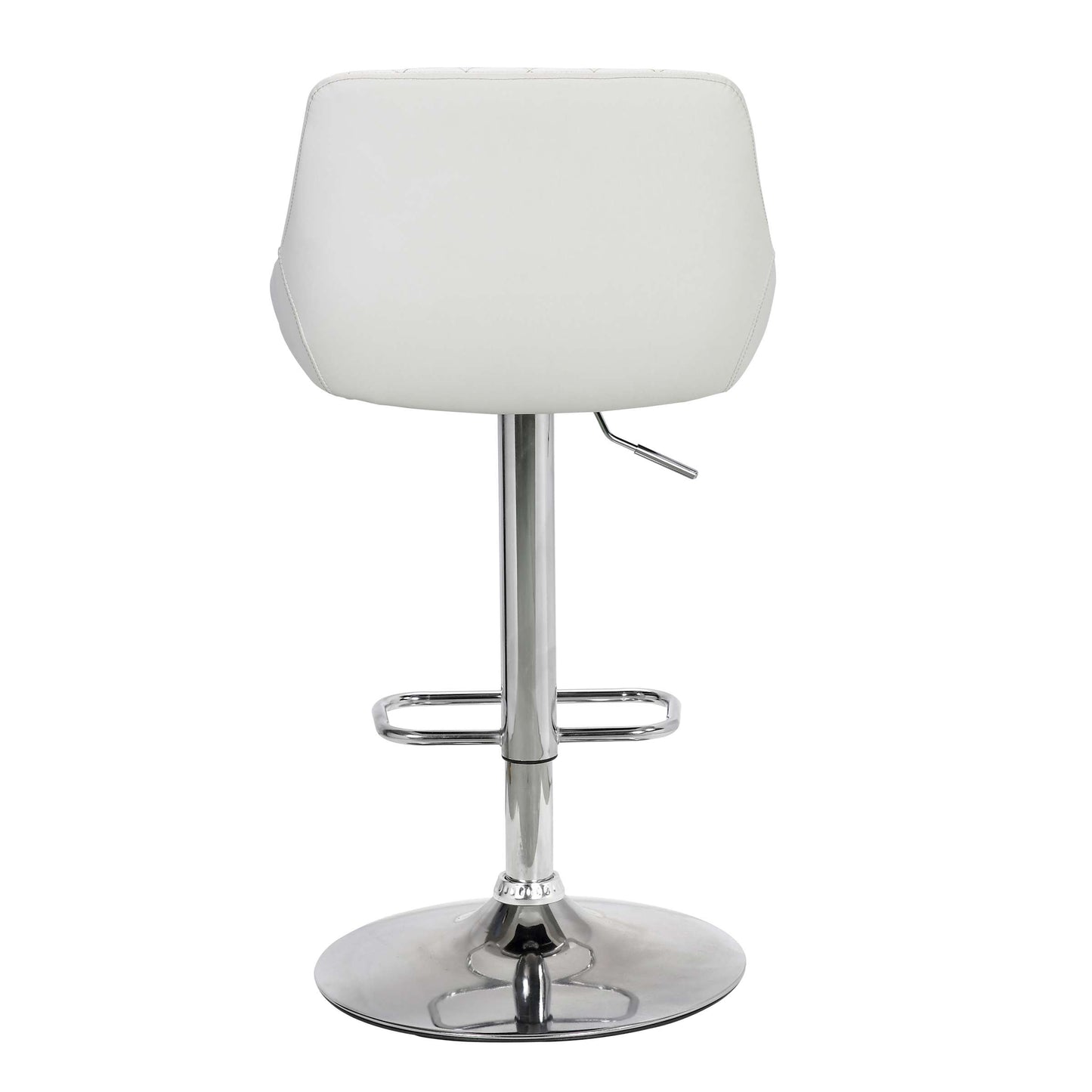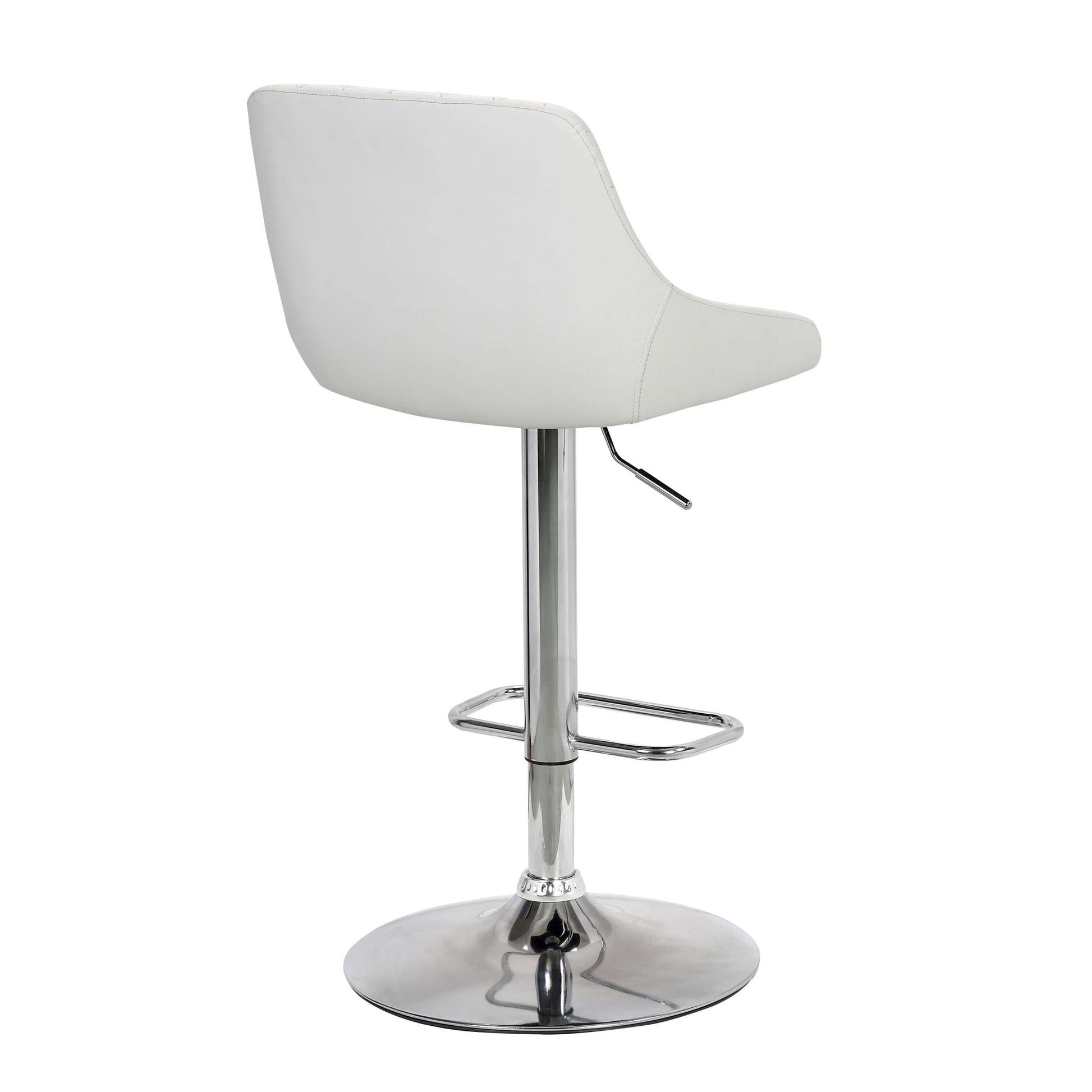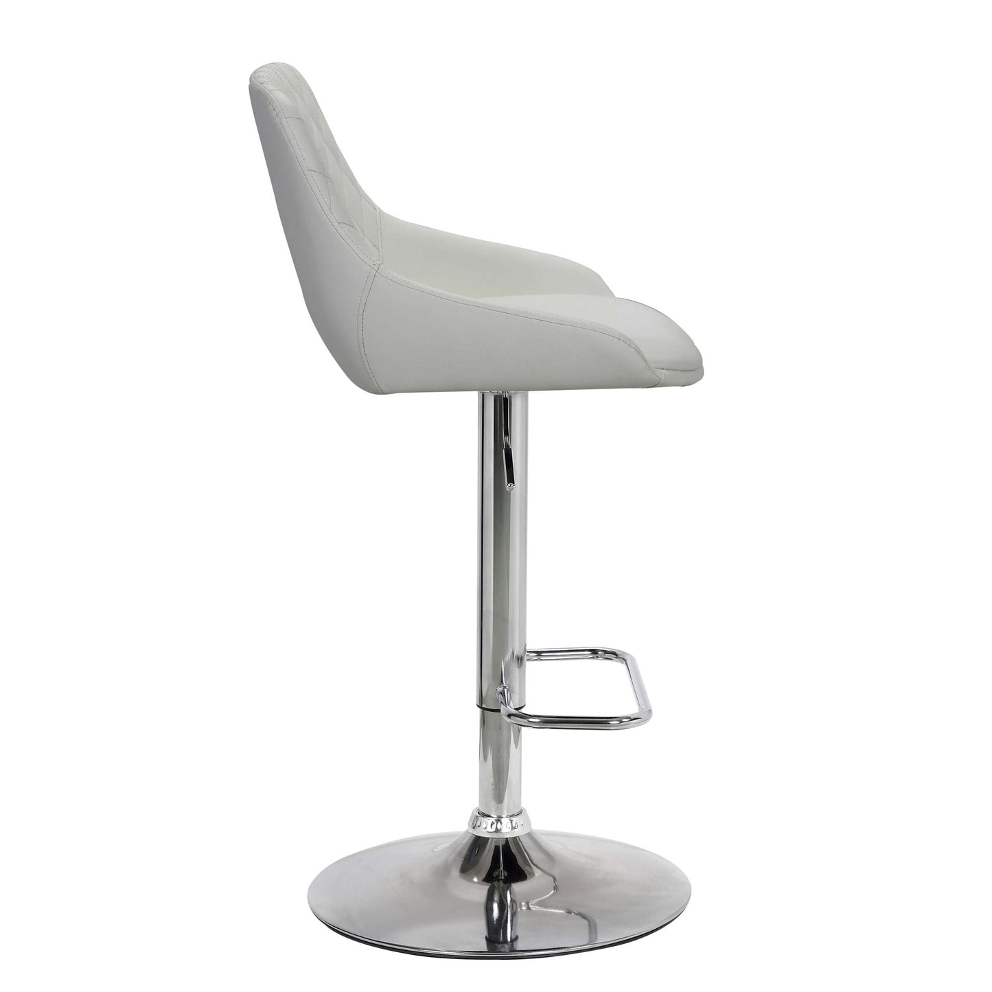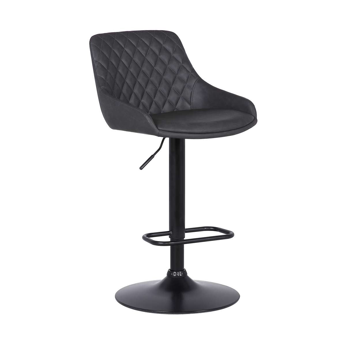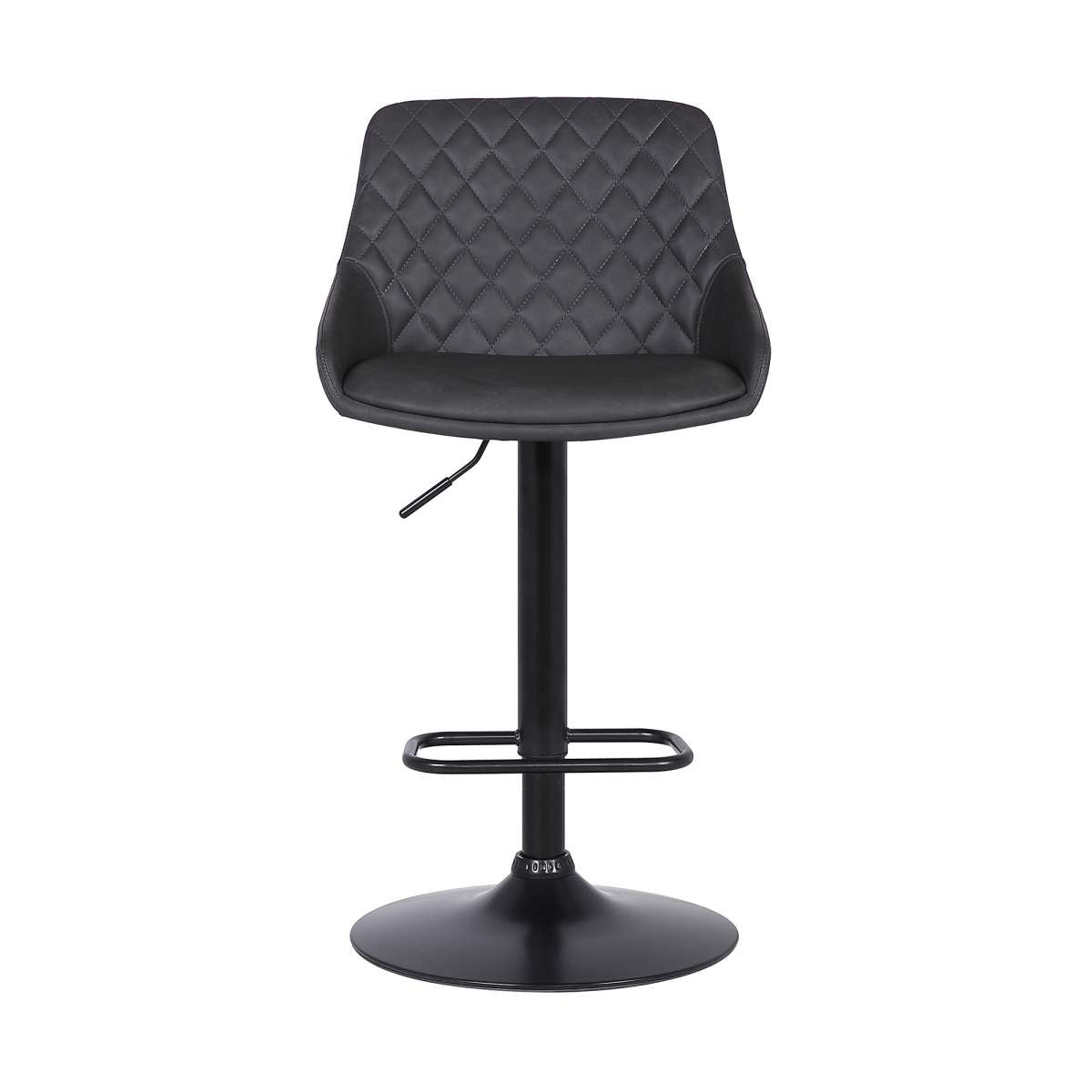 Find comfort at any height with the Anibal Adjustable Height Swivel Grey Faux Leather and Black Metal Bar Stool from Armen Living. The Anibal features beautiful soft faux leather upholstery and that complimented by the diamond stitched pattern on the seat back. The full 360-degree swivel motion gives you and your guests the mobility you need to stay fully engaged when dining or entertaining. The adjustable seat height ranges from 23.5” to 32.5” which makes it easy to use in any kitchen counter, dining space, or home bar. The pedestal base keeps your seat firmly planted and the faux leather upholstery makes clean up a breeze, this makes the Anibal a wonderful addition to any home with small children. The Anibal Adjustable Swivel Faux Leather and Metal bar stool is available in your choice of white faux leather upholstery with a chrome base or black faux leather with a matte black metal base.