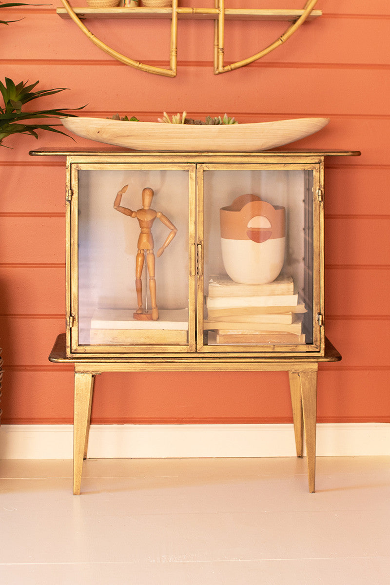 Antique Brass And Glass Two Door Cabinet By Kalalou