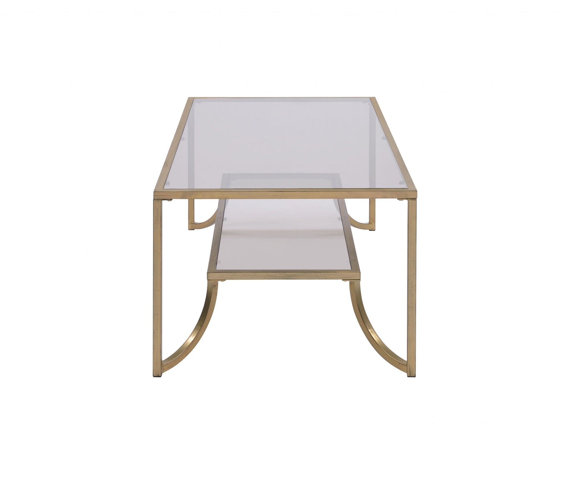 Antique Gold Smoky Glass Metal Coffee Table By Homeroots