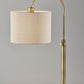 Antiqued Brass Metal Adjustable Arched Lamp With Beige Drum Shade By Homeroots