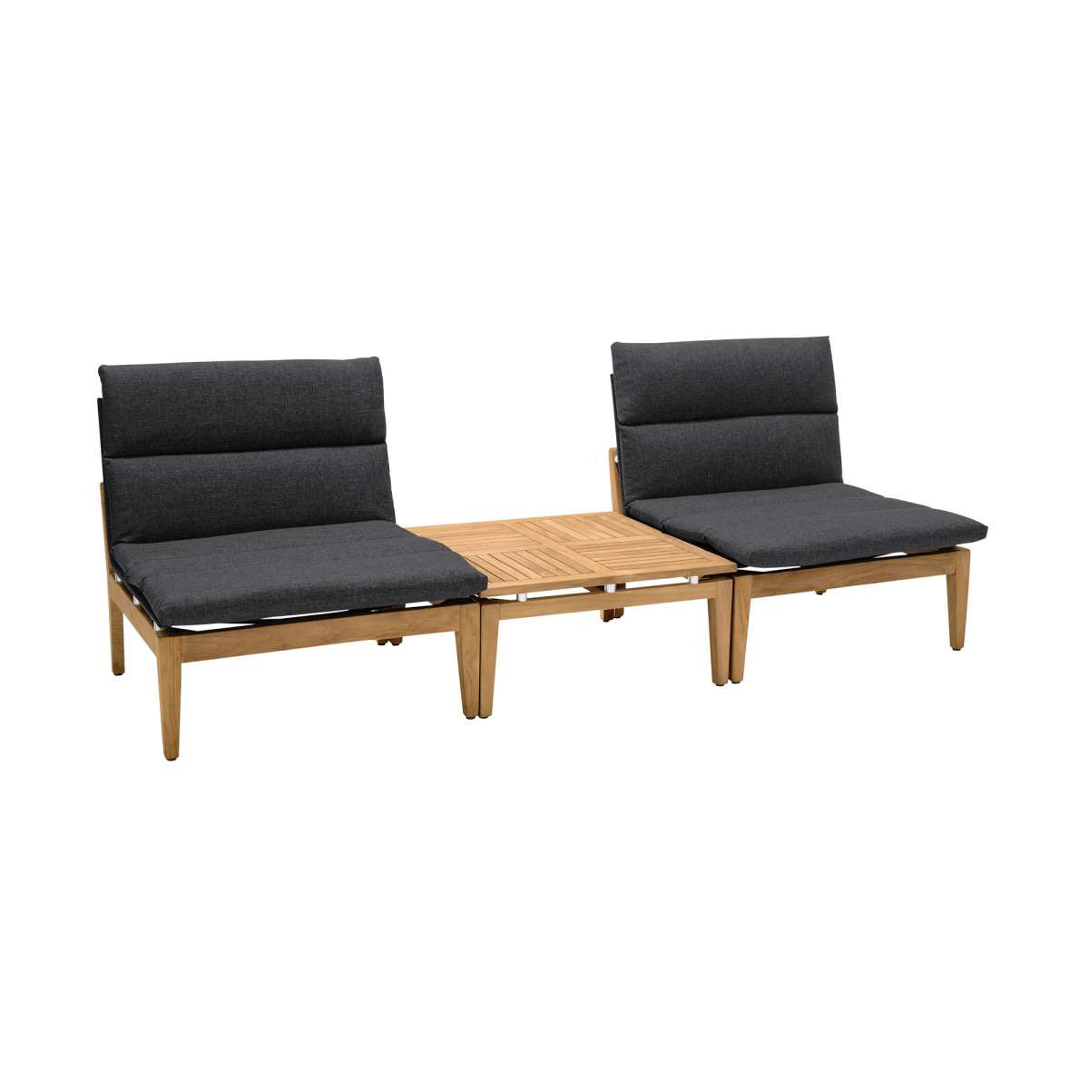 Arno Outdoor 3 Piece Teak Wood Seating Set in Charcoal Olefin By Armen Living