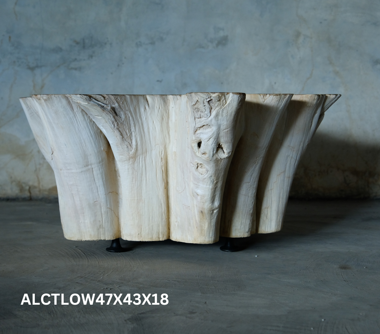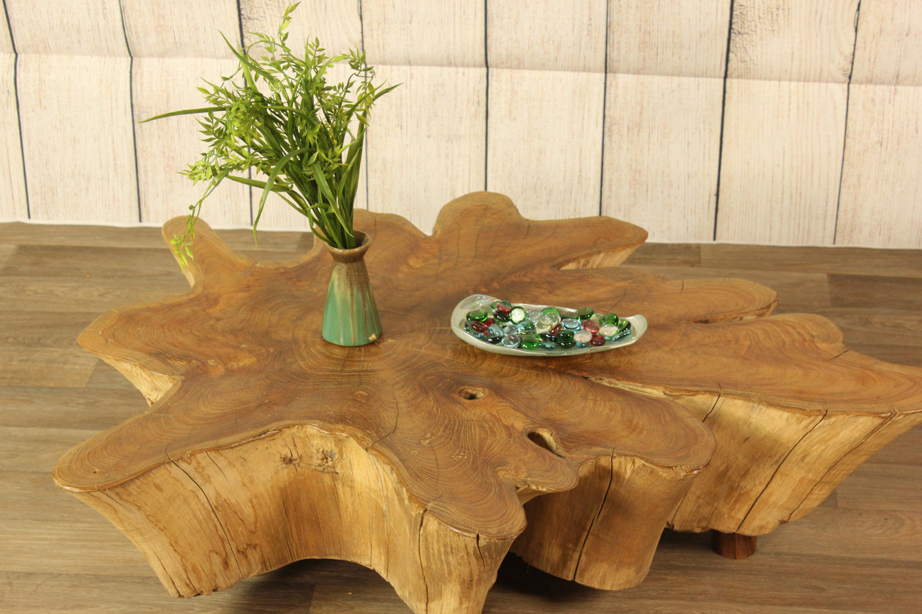 | Uses: Can be used as a coffee table as it is or used as a base with a glass, depending upon the ingenuity of the connoisseur. Perfect for placing indoors in living rooms, offices, hotel lobbies, entertainment rooms. Since teak is weatherproof wood it can be placed in covered porches, patios, and more, but we recommend it be placed in enclosed spaces for longevity and less maintenance. |