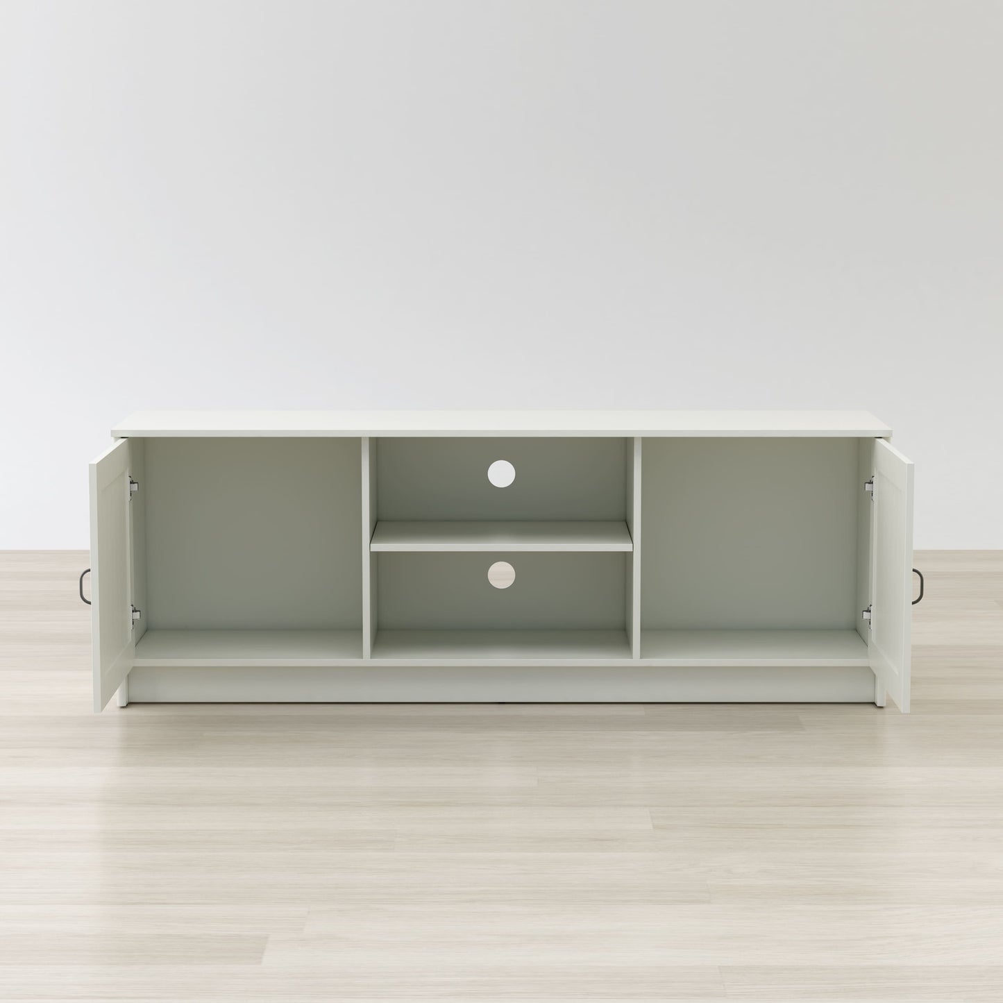 Elevate the look of your living room with this simple and traditional Ashley 63” TV Stand and Media Console Storage. Perfect for placing your TV receivers, speakers, game stations, portraits and more, seamlessly run any wires or cables through the two grommet holes from the removable center shelf and divider. Featuring ample storage space behind two metal door handles it’s the perfect TV Stand and Media Console Storage for your living room and home.