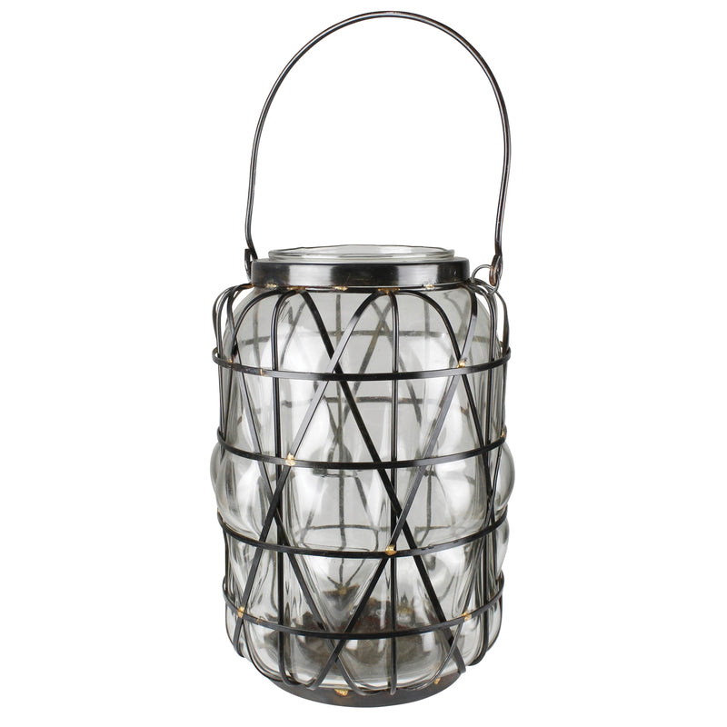 Iron frames are blown into with hot glass, forever encasing the bulbous shapes. The girth of each section of blown glass reflects the candlelight is a luminous way, either sitting or hanging this lantern is your go to for entertaining.