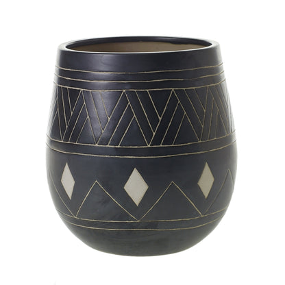 The Bamba Pot Is Modern Earthenware With A Unique Hand-Carved Pattern And Hand-Brushed Black Glaze To Finish. Because Of Its Unique Porous Material, This Piece Is Not 100% Watertight.