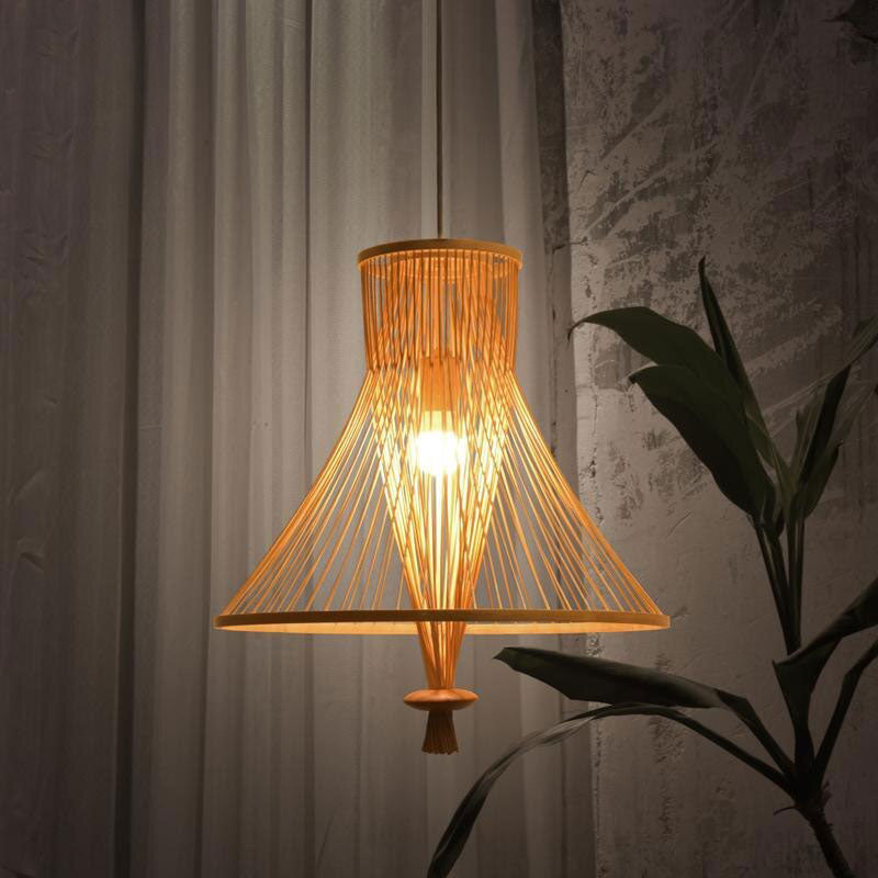 Bamboo Wicker Rattan Bundle Shade Pendant Light.
