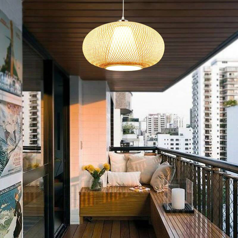 Bamboo Wicker Rattan Lantern Pendant Light Fixture Asian Japanese Rustic Hanging Ceiling Lamp Avize Luminaria Lustre Indoor Home