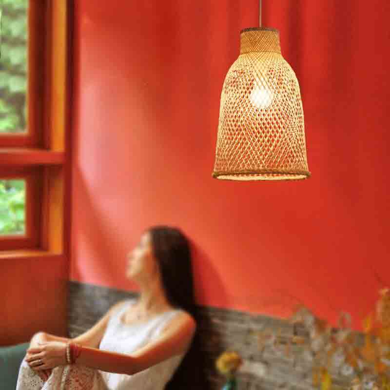 Bamboo Wicker Rattan Lantern Shade Pendant Light.