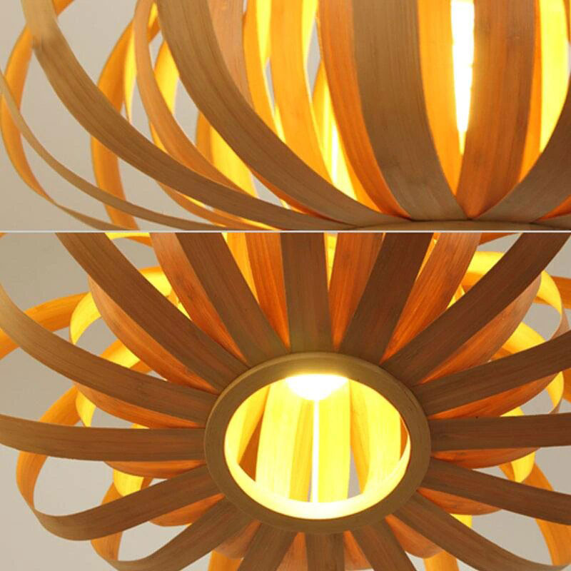 Bamboo Wicker Rattan Pumpkin Shade Pendant Light By Artisan Living