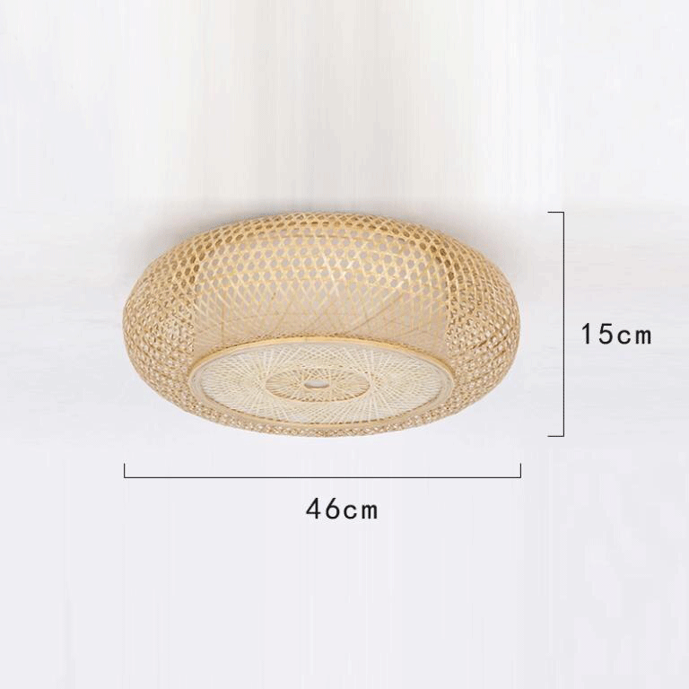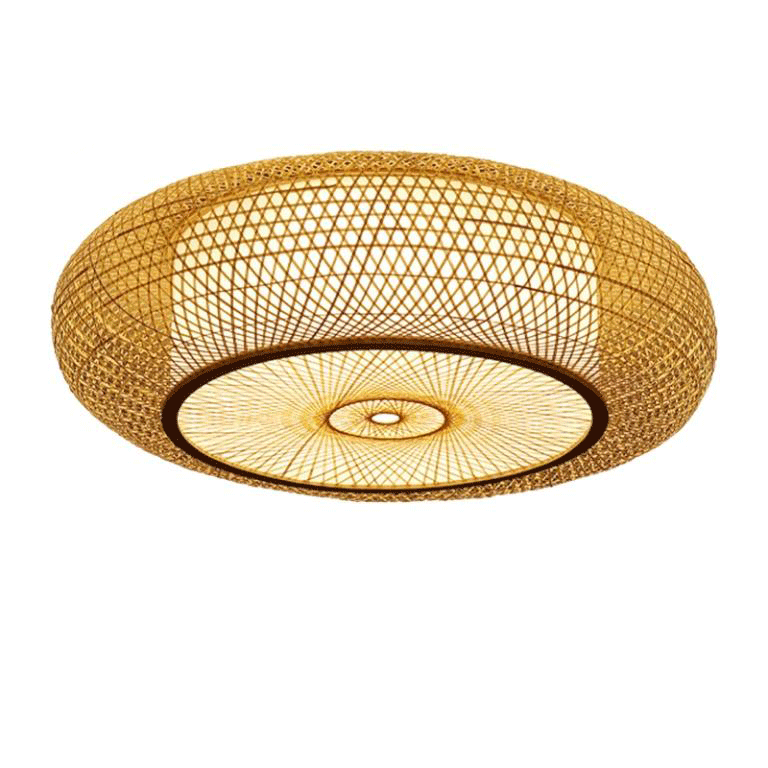 Bamboo Wicker Rattan Round Ripple Ceiling Light Fixture Craft Vintage Rustic Asian Japanese LED Plafon Lamp Bedroom Living Room.