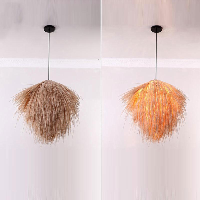 Hand-Woven Bamboo Wicker Rattan Straw Pendant Light Fixture Asian Rustic Country Decor Japanese Style Lamp Lustre Foyer Salon.
