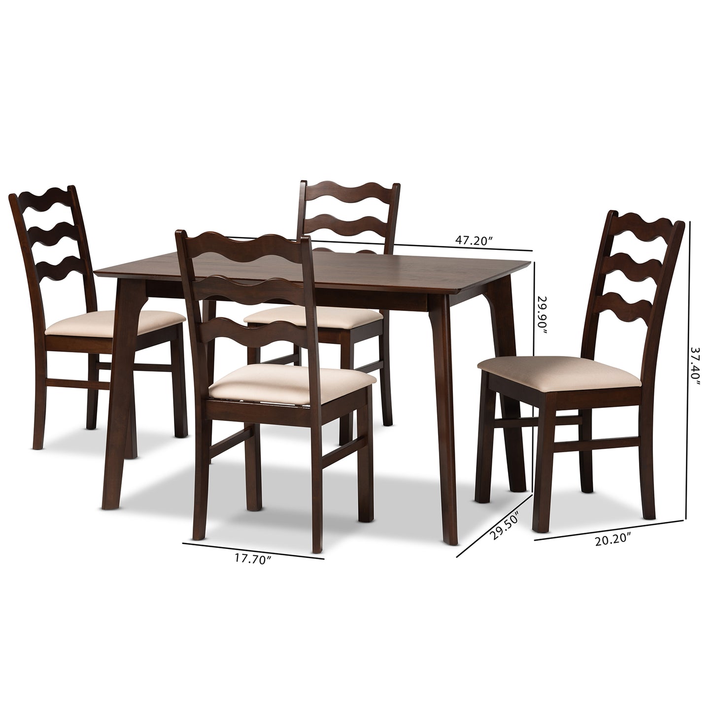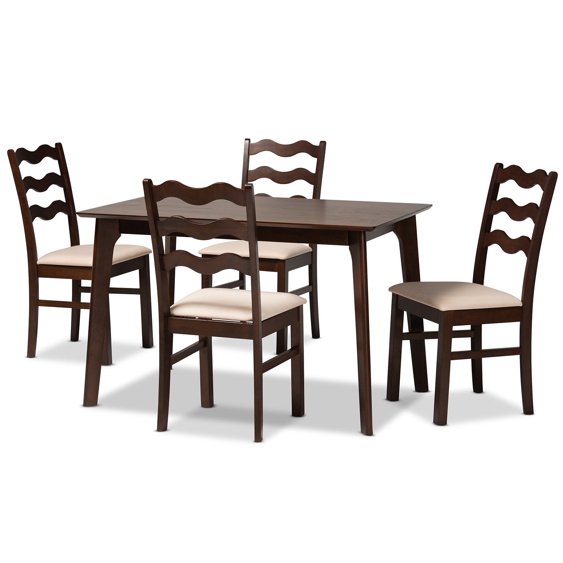 Baxton Studio Amara Mid-Century Modern Cream Fabric and Dark Brown Finished Wood 5-Piece Dining Set