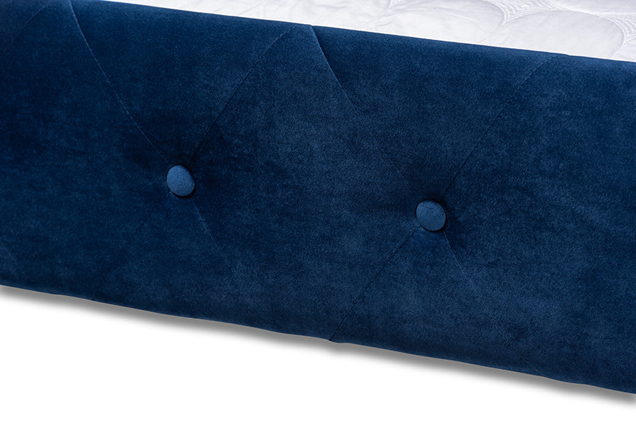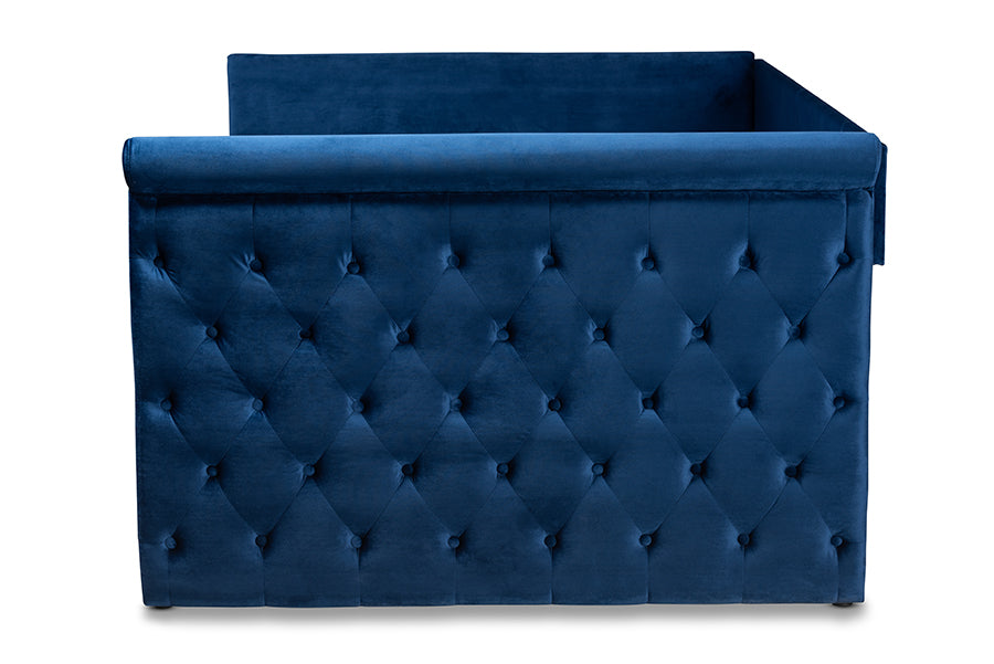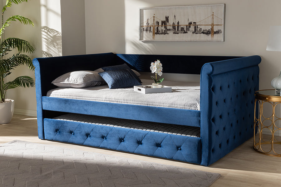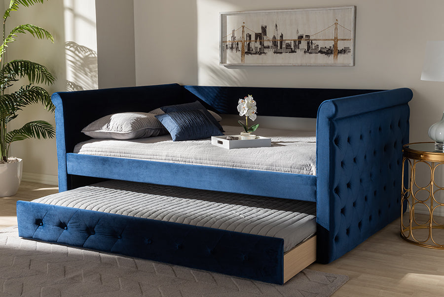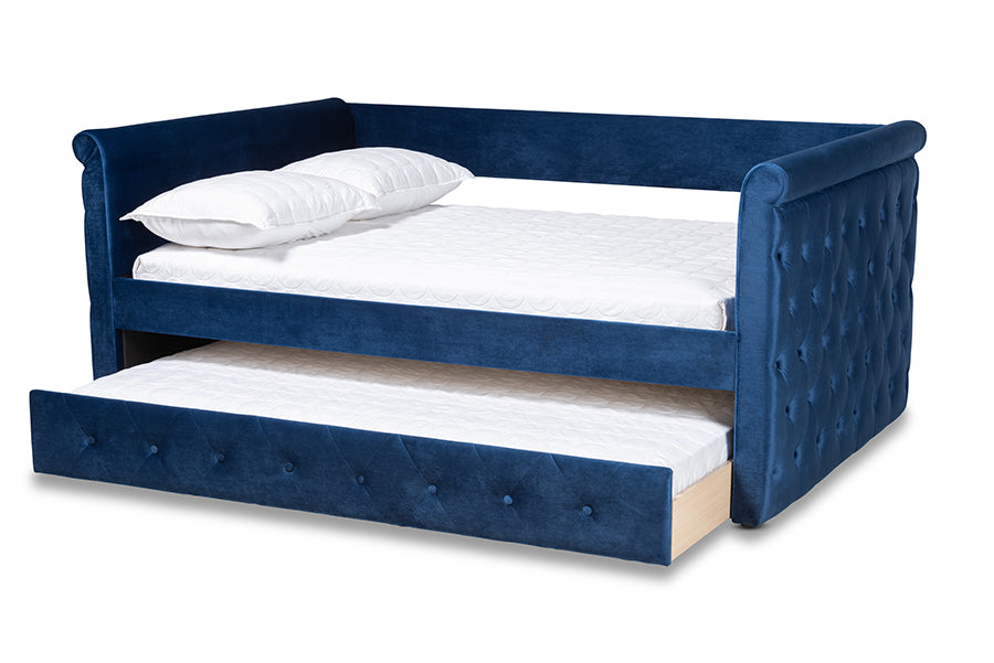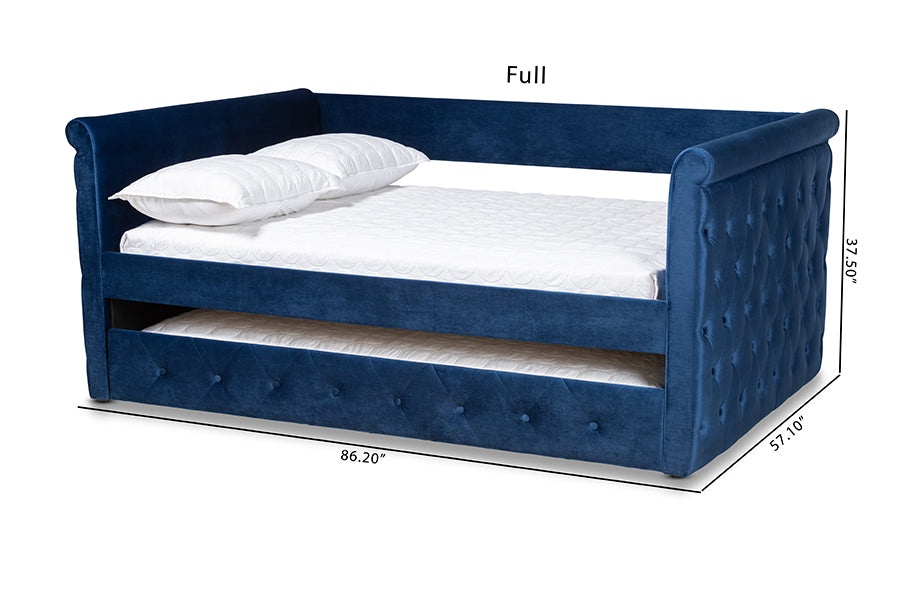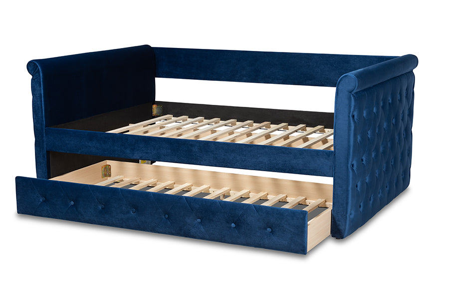 Baxton Studio Amaya Modern and Contemporary Navy Blue Velvet Fabric Upholstered Full Size Daybed with Trundle