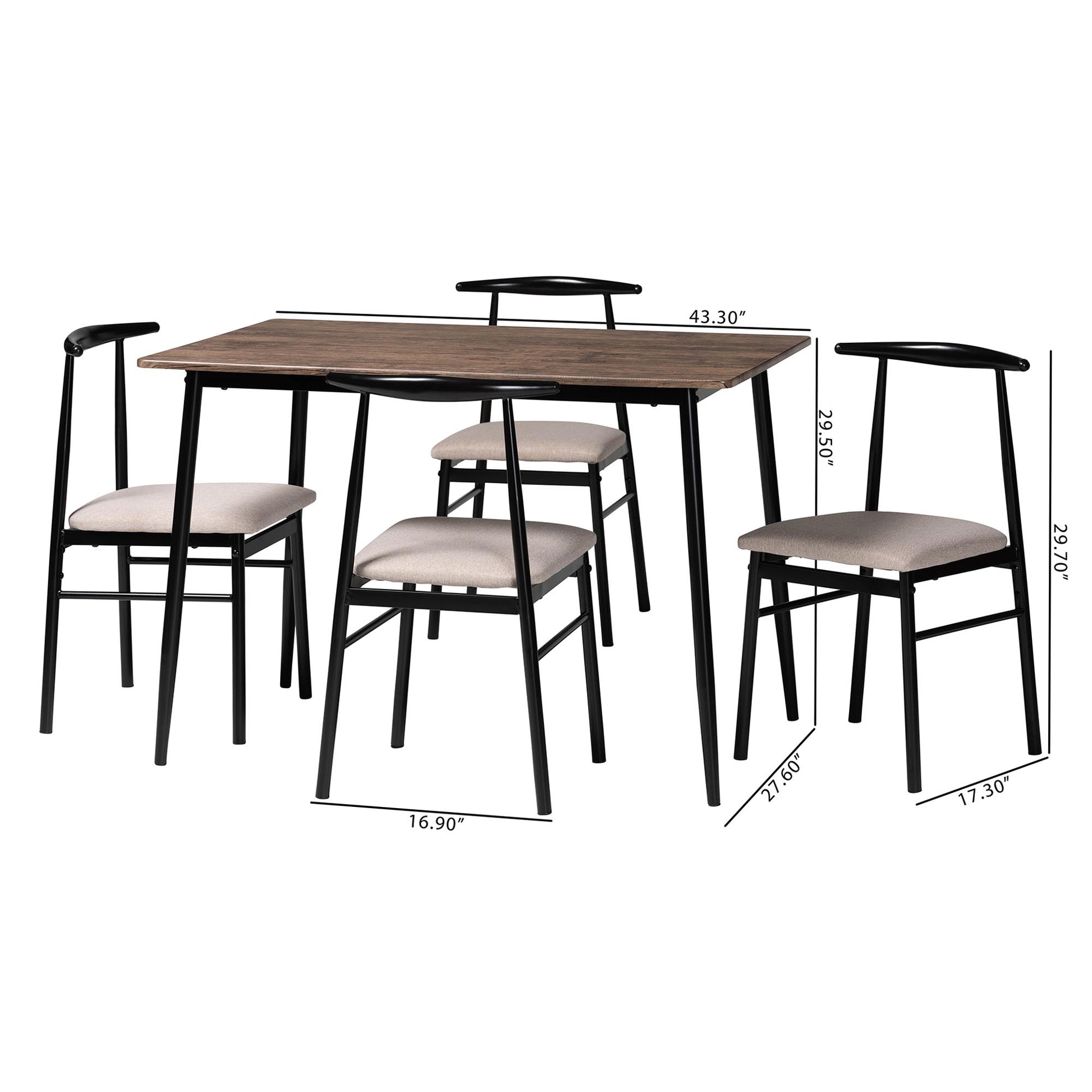 Baxton Studio Arnold Modern Industrial Beige Fabric and Metal Dining Set