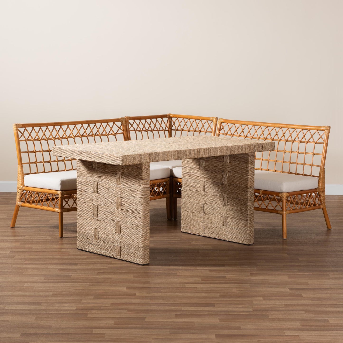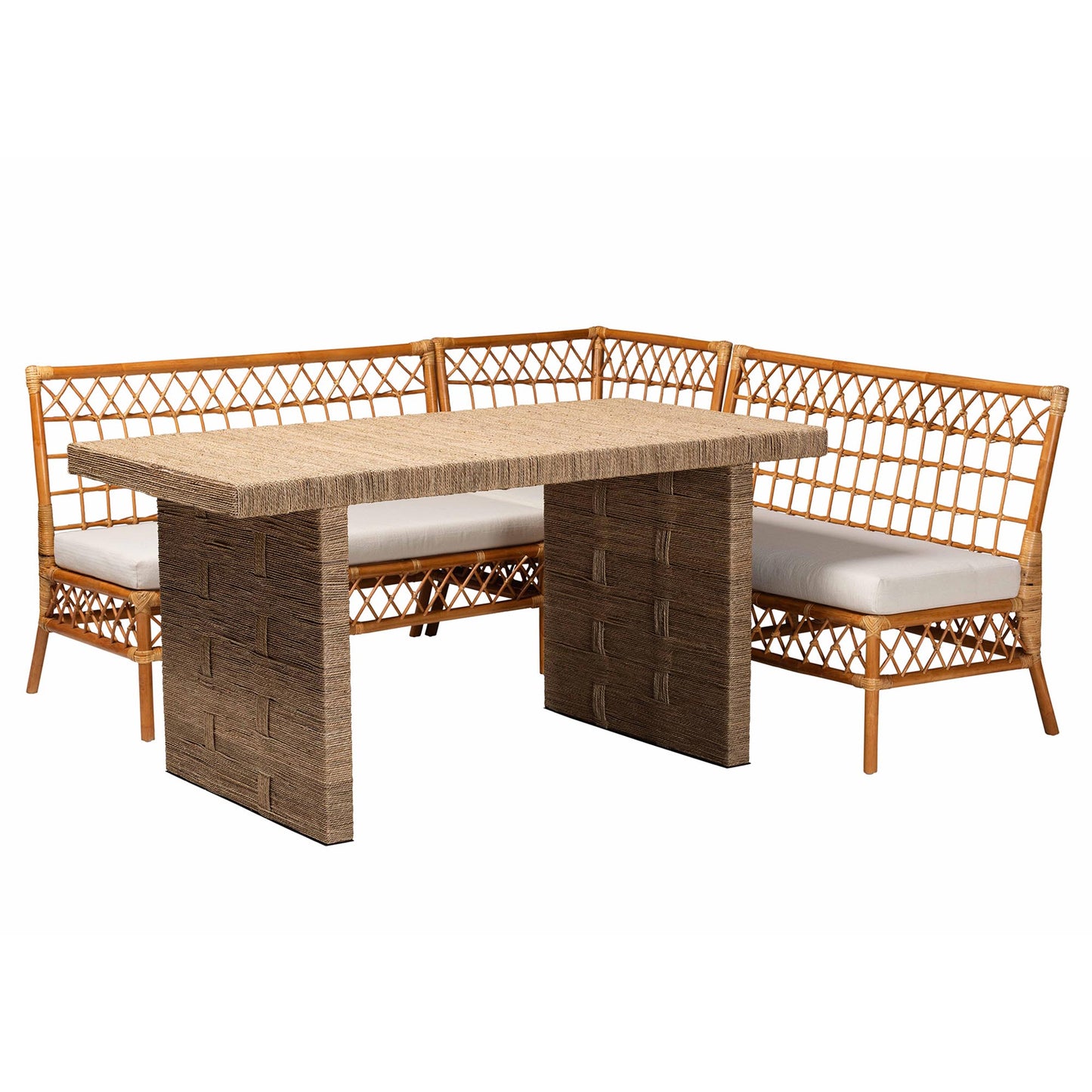 Baxton Studio bali & pari Abella Modern Bohemian Honey Rattan 4-Piece Dining Nook Set