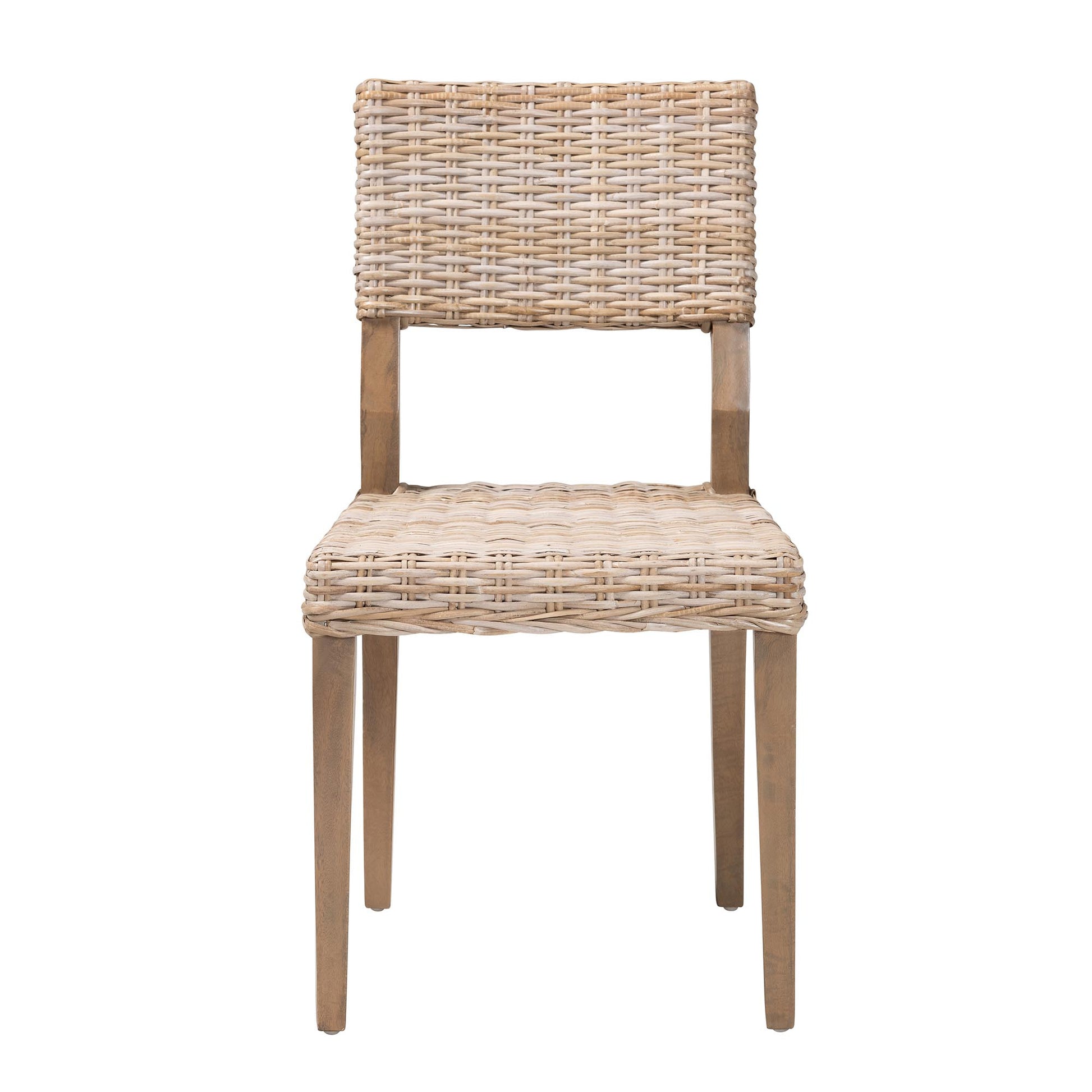 Baxton Studio bali & pari Barossa Bohemian Grey Kubu Rattan and Mahogany Wood Dining Chair