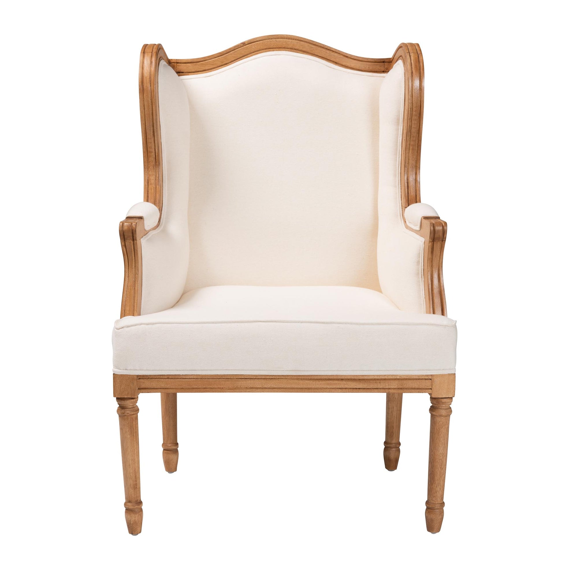 Baxton Studio bali & pari Rachana Traditional French Beige Fabric and Honey Oak Finished Wood Accent Chair