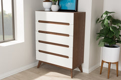 Baxton Studio Barrett Mid-Century Modern Walnut Brown Finished Wood and Synthetic Rattan 4-Drawer Chest
