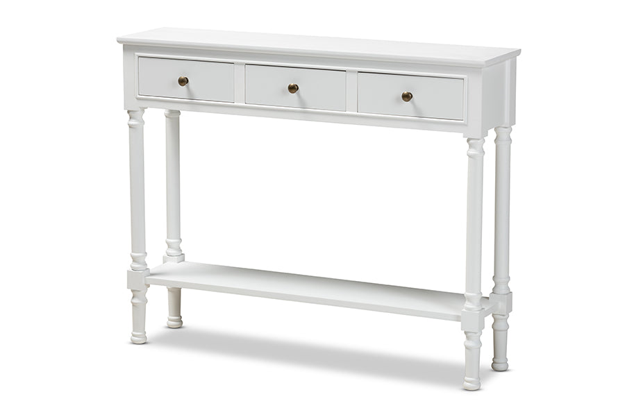 Baxton Studio Calvin Classic and Traditional French Farmhouse White Finished Wood 3-Drawer Entryway Console Table