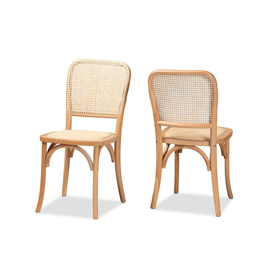 Baxton Studio Neah Mid-Century Modern Brown Wov... Baxton Studio Neah Mid-Century Modern Brown Woven Rattan and Wood 2-Piece Cane Dining Chair Set