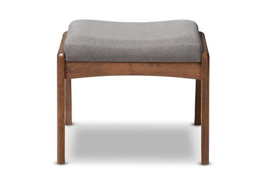 Baxton Studio Roxy Mid-Century Modern Walnut Wo... Baxton Studio Roxy Mid-Century Modern Walnut Wood Finishing and Grey Fabric Upholstered Ottoman