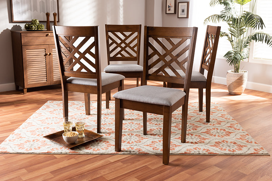 Baxton Studio Caron Modern and Contemporary Grey Fabric Upholstered Walnut Brown Finished 4-Piece Wood Dining Chair Set Set