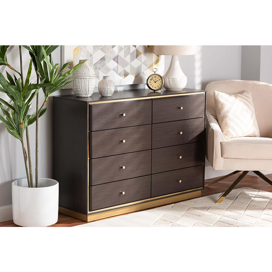 Baxton Studio Cormac Modern and Contemporary Espresso Brown Finished Wood and Gold Metal 8-Drawer Dresser