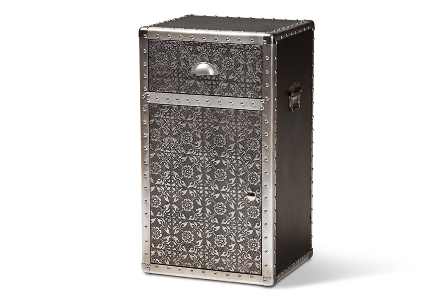 Baxton Studio Cosette Vintage Industrial Silver Metal Floral Accent Cabinet