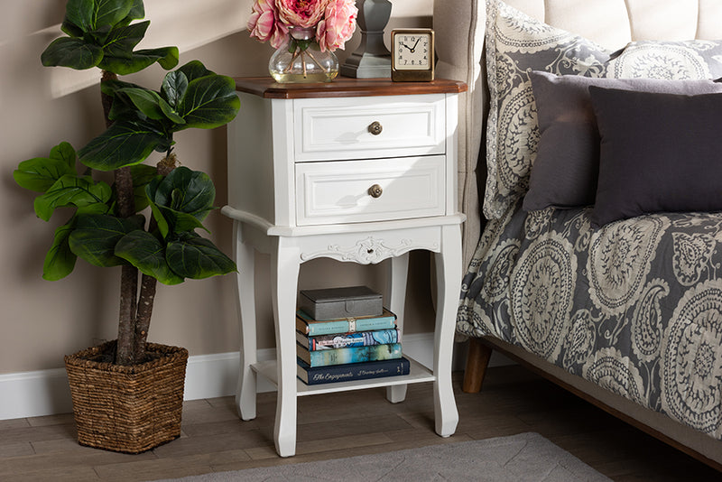Baxton Studio Darla Classic and Traditional French White and Cherry Brown Finished Wood 2-Drawer Nightstand