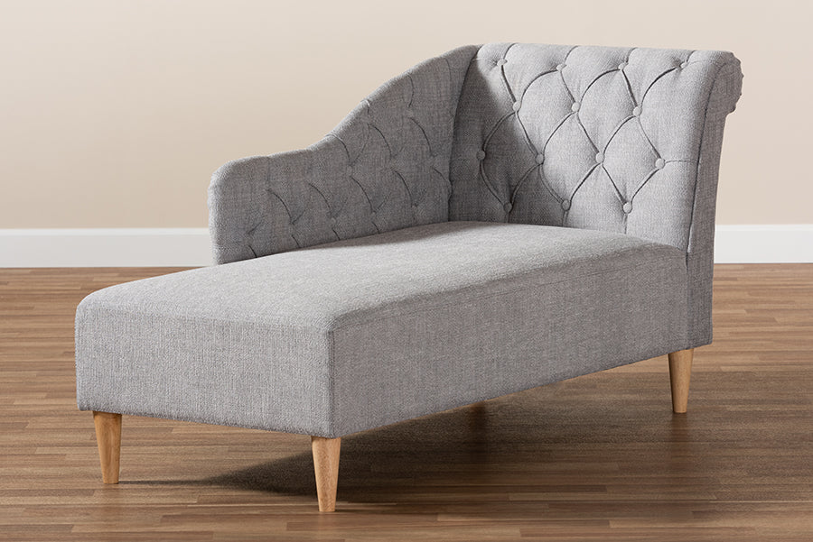 Baxton Studio Emeline Modern and Contemporary Grey Fabric Upholstered Oak Finished Chaise Lounge