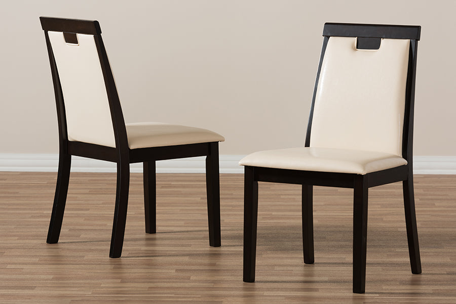 Baxton Studio Evelyn Modern and Contemporary Beige Faux Leather Upholstered and Dark Brown Finished 5-Piece Dining Set