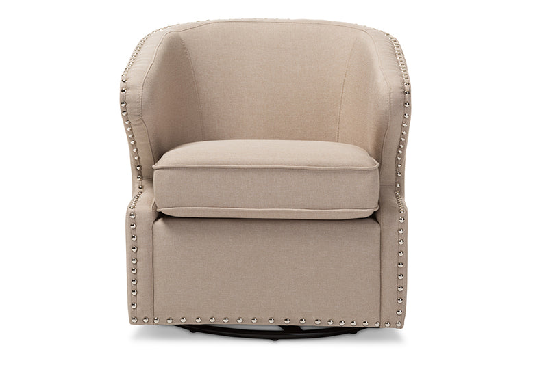 Baxton Studio Finley Mid-century Modern Beige Fabric Upholstered Swivel Armchair