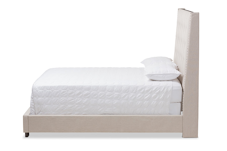 Baxton Studio Georgette Modern and Contemporary Light Beige Fabric Upholstered Queen Size Bed