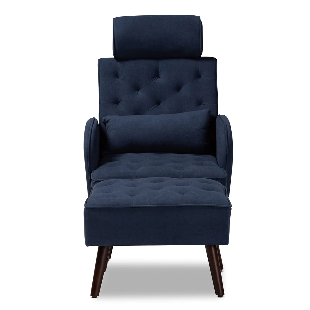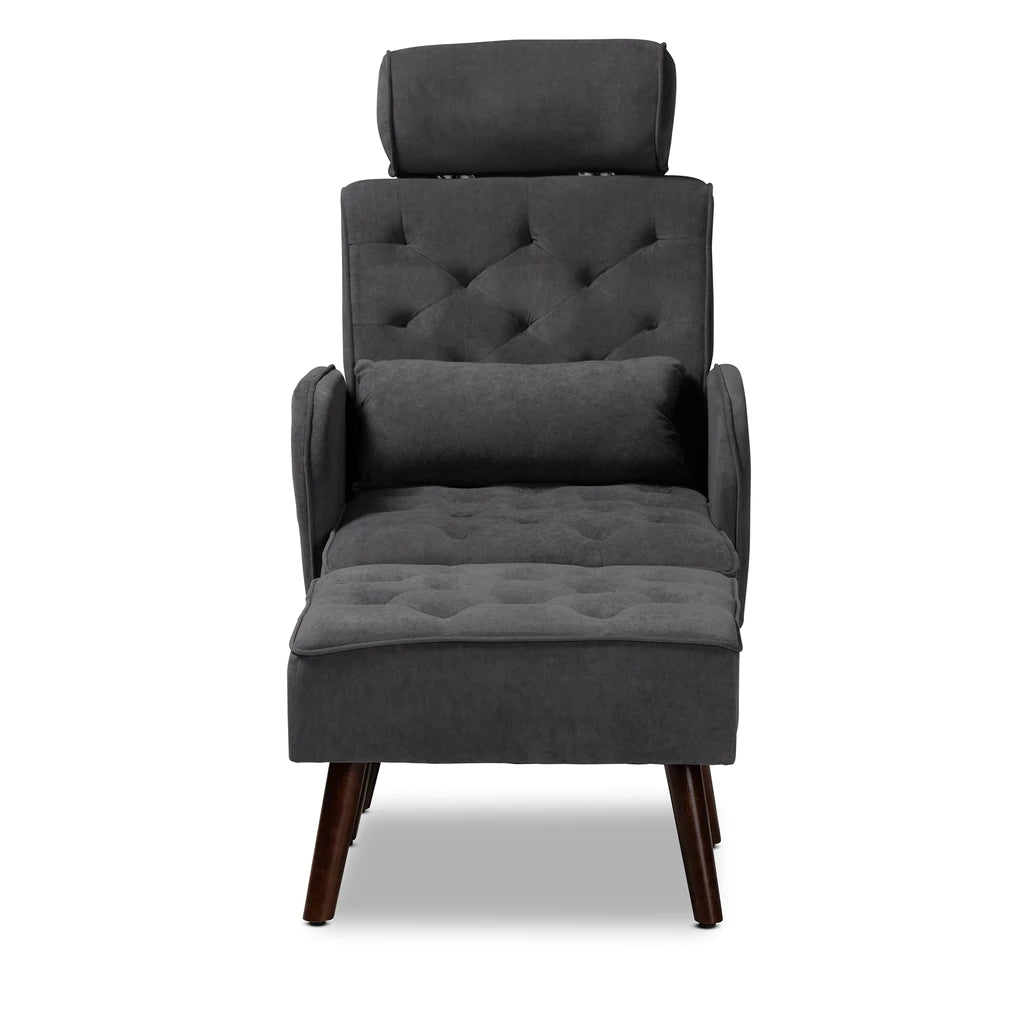 Baxton Studio Haldis Wood 2-Piece Recliner Chair And Ottoman Set