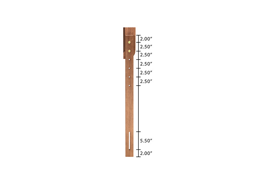 | Upper back features 6 predrilled holes 2.50" apart from one another for 5 different height adjustment options |