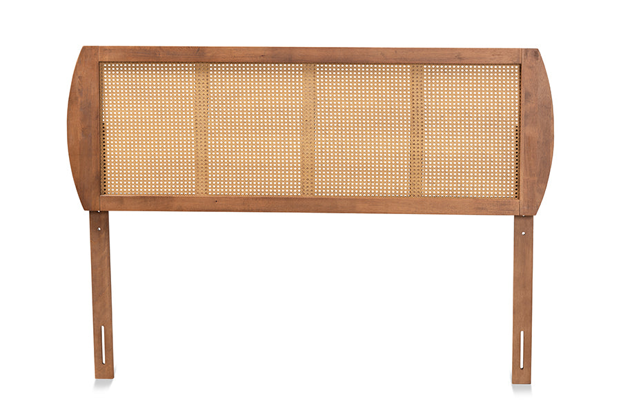Baxton Studio Harris Mid-Century Modern Ash Walnut Finished Wood and Synthetic Rattan King Size Headboard