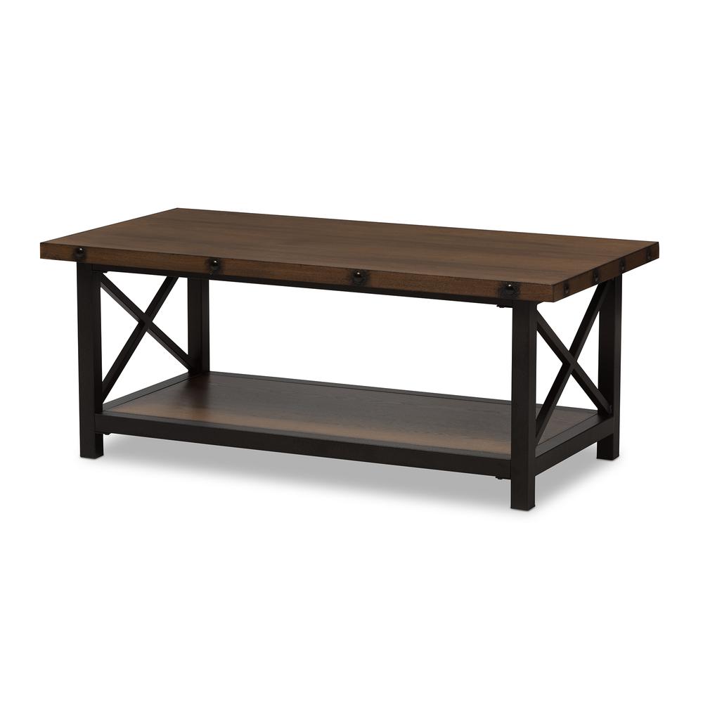 Baxton Studio Herzen Rustic Industrial Style Antique Black Textured Finished Metal Distressed Wood Occasional Cocktail Coffee Table