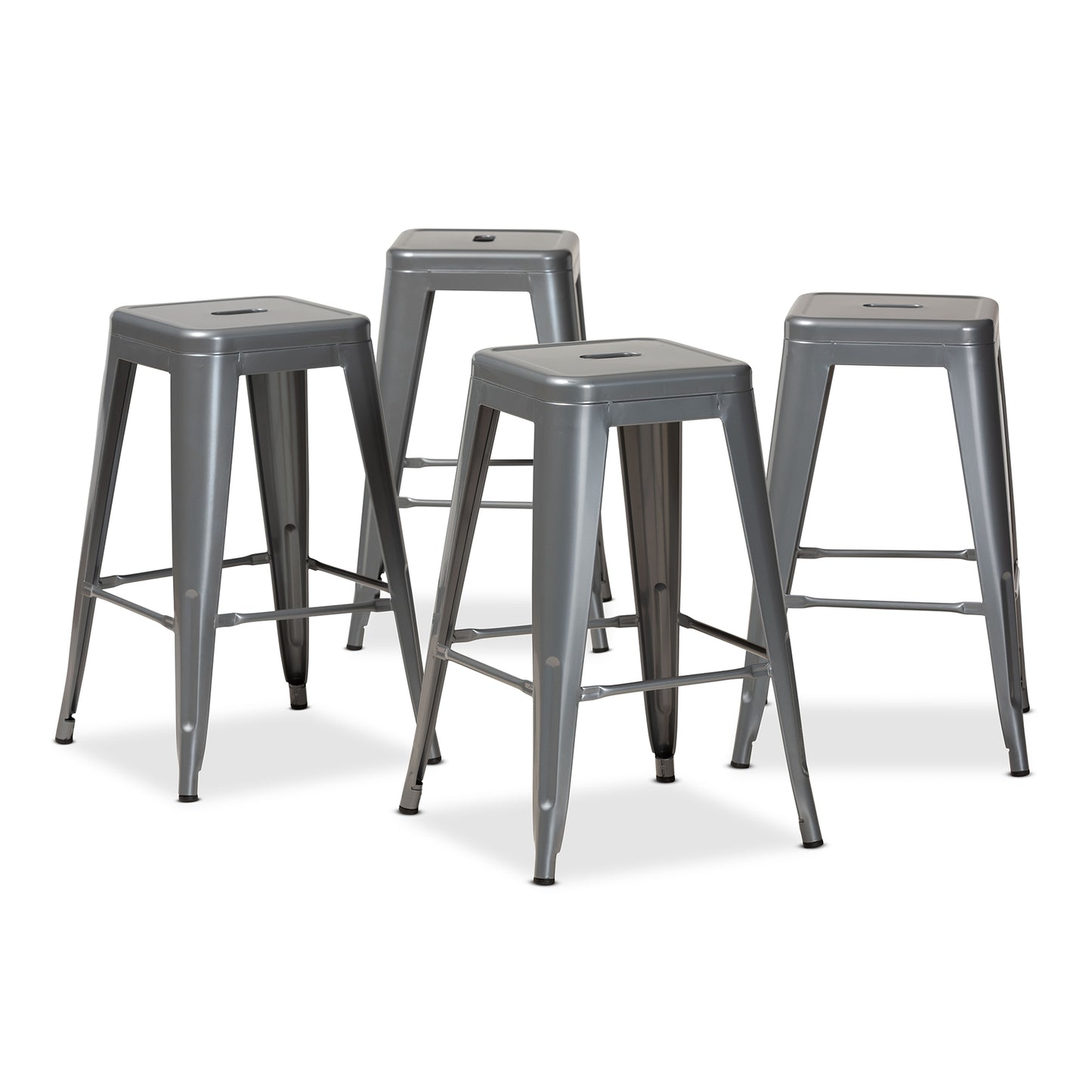 Baxton Studio Horton Modern and Contemporary Industrial Grey Finished Metal 4-Piece Stackable Counter Stool Set