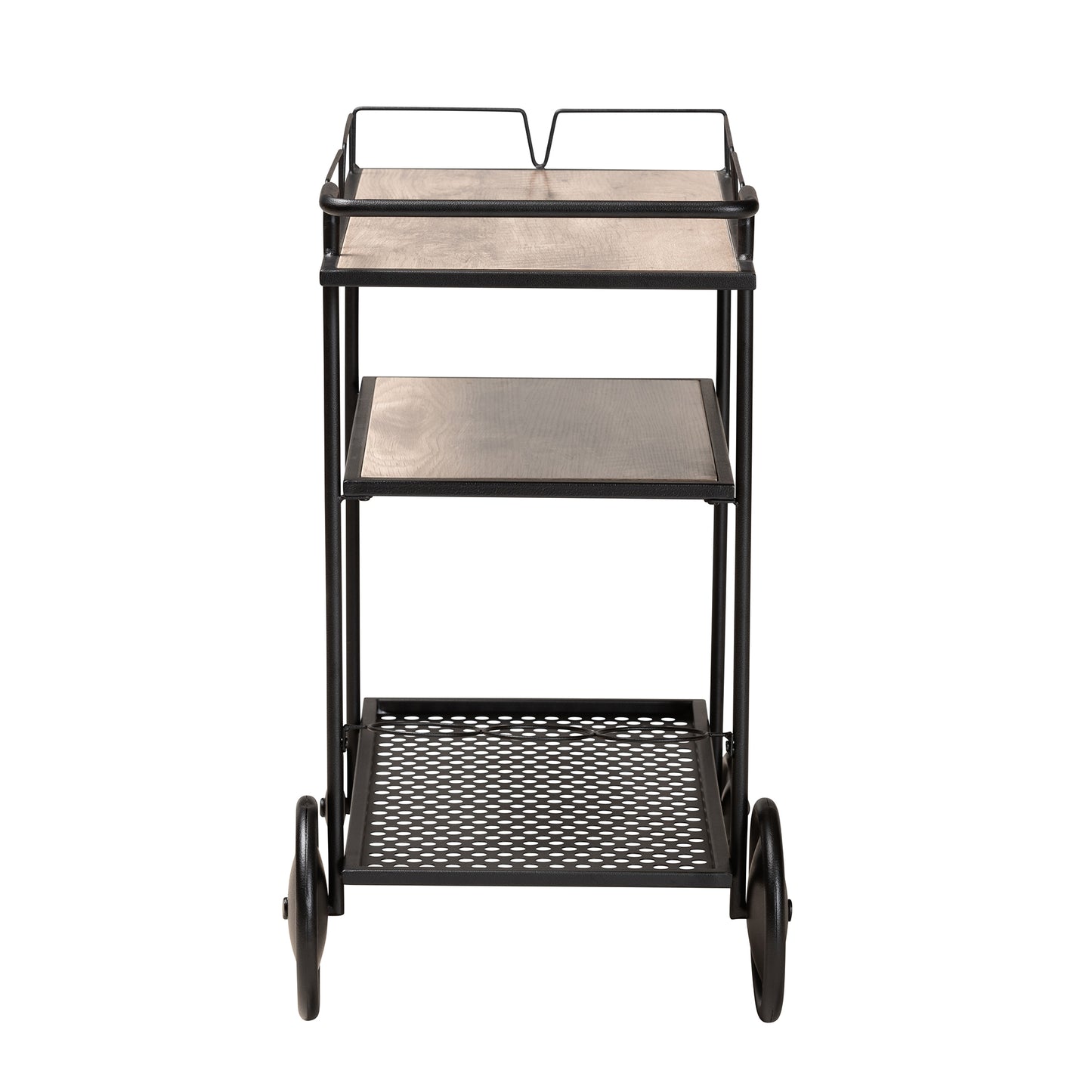 Baxton Studio Huntley Modern Industrial Walnut Brown Finished Wood and Black Metal Mobile Wine Cart